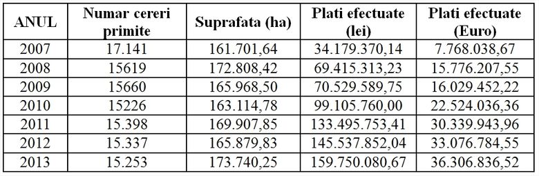 De mentionat este faptul că plățile pe suprafață efectuate de APIA Sibiu, au crescut în 2013 de 4,7 ori față de 2007, de la 7,7 milioane euro, la 36,3 milioane în 2013.