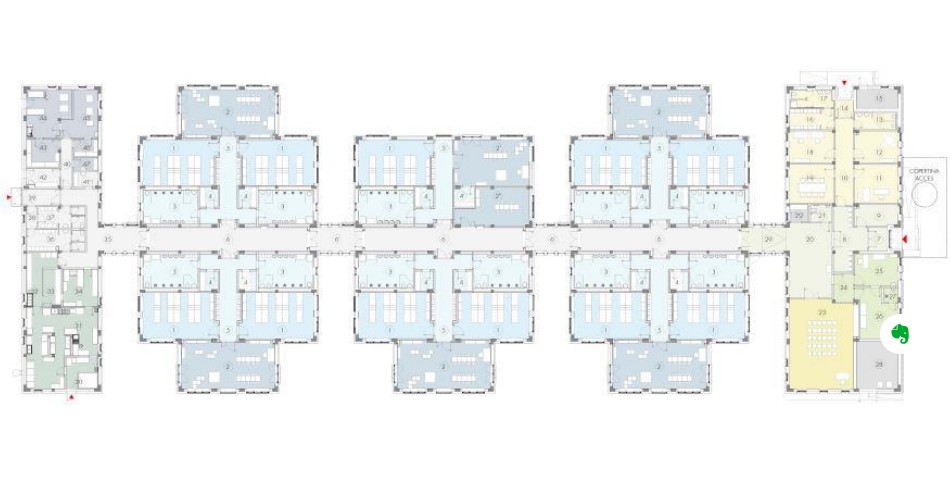 Funcțiunea de creșă prevede următoarele spatii: 11 dormitoare, 6 camere de joacă, prevăzute cu vestiar filtru și grupuri sanitare, un spațiu pentru luat masa, grup sanitar persoane cu dizabilități, zona de primire, cabinet medical cu izolator, zona administrativă și nucleul tehnico-gospodaresc.