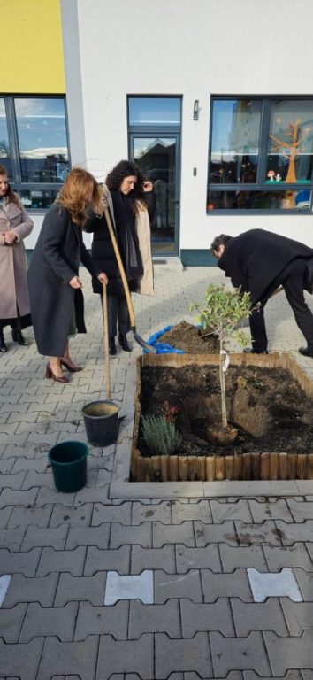 Un gest simbolic: plantarea a doi copaci în curtea școlii