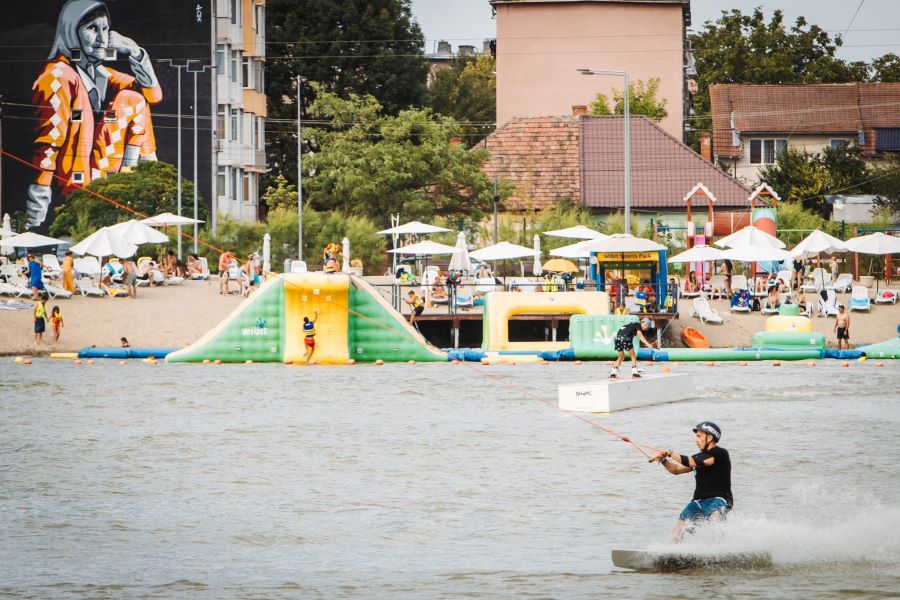 – Puteți practica wakeboarding de marți până duminică, între orele 12.00 -18.00; costumul de neopren pe care îl primiți gratuit, în baza biletului, vă va asigura confortul termic