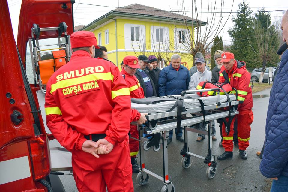 Evenimentul a început cu sfinţirea noii maşini de către preotul ortodox Claudiu Cândea, care a urat apoi echipajului SMURD cât mai multe misiuni îndeplinite cu succes cu noua maşină. Reprezenţanţii Inspectoratului pentru Situații de Urgență ”Cpt. Dumitru Croitoru” au ţinut să felicite echipajul civil al SMURD Copşa Mică, acesta fiind unul din foarte puţinele echipaje SMURD susţinute financiar, direct de comunitatea locală pentru activitatea depusă şi apoi au prezentat invitaţilor dotările noii maşini.