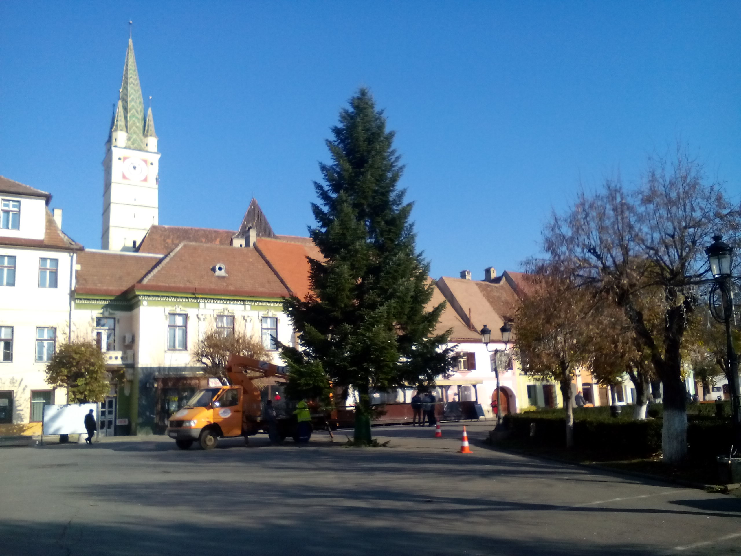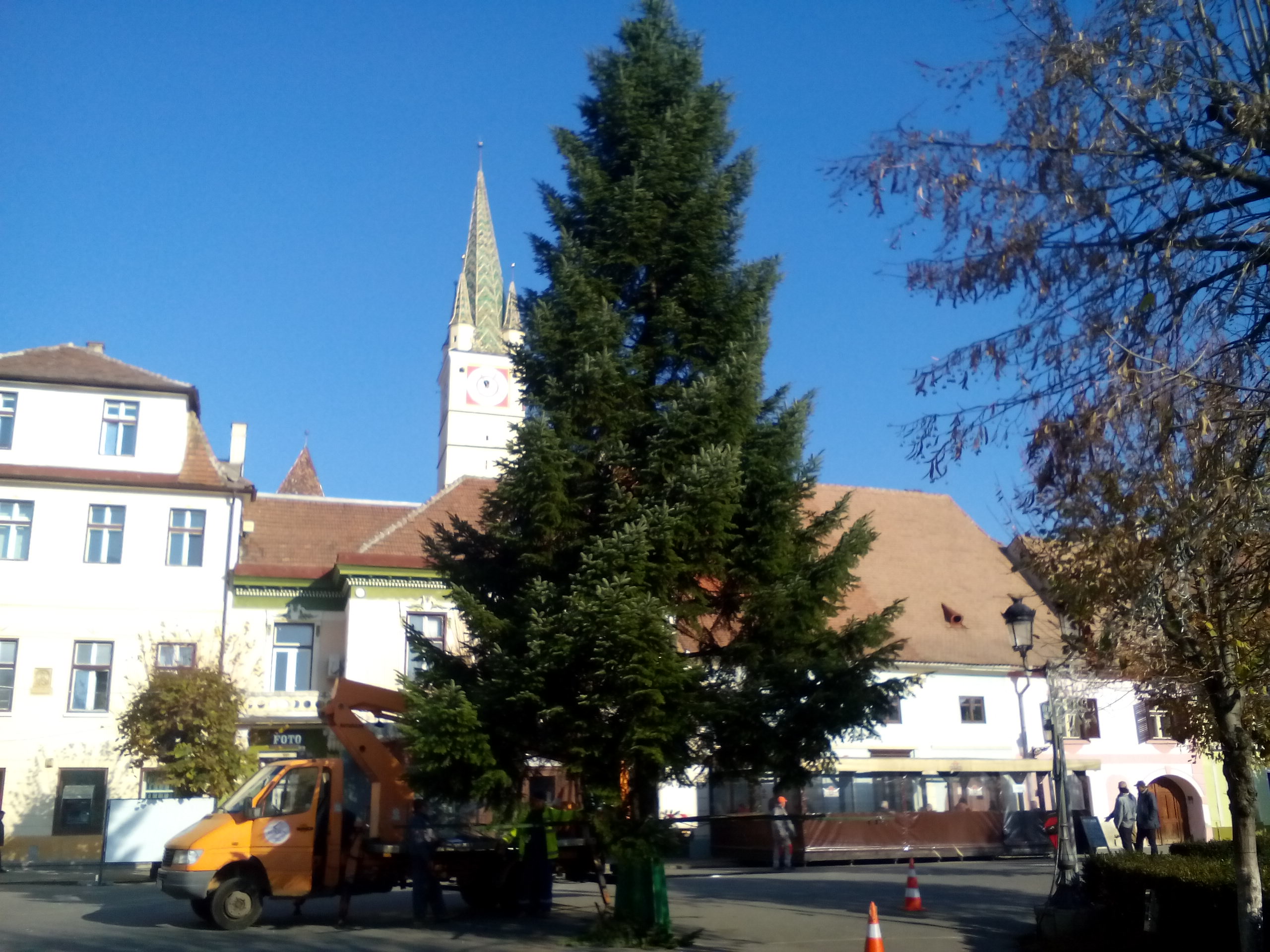 Bradul care va fi împodobit de municipalitatea medieșeană pentru perioada Sărbătorilor de Iarnă din acest an a fost amplasat în Piața Regele Ferdinand I, urmând ca în zilele următoare acesta să fie împodobit cu ornamente specifice sărbătorilor de iarnă.