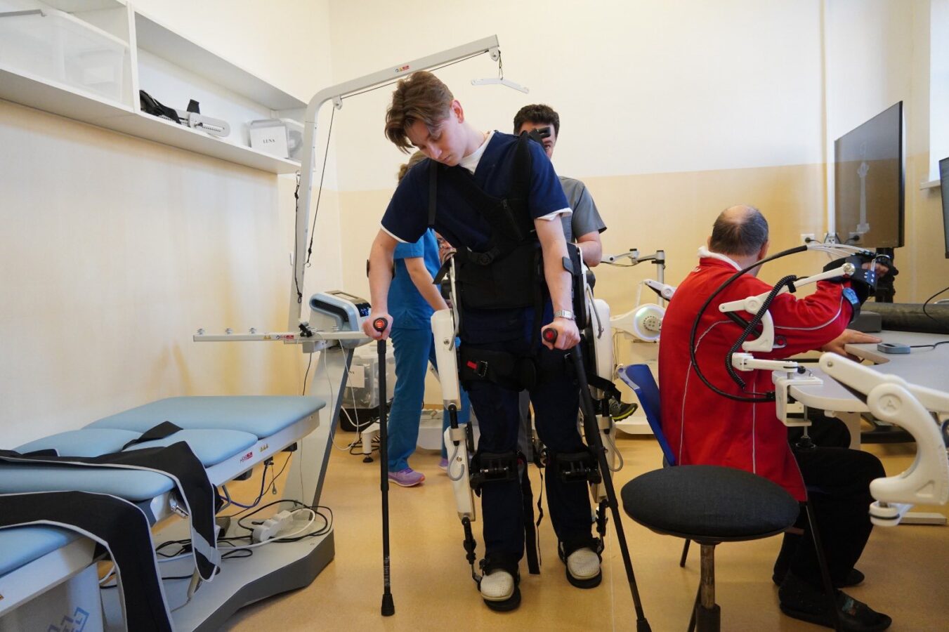Secția Clinică Recuperare Medicală I de la Spitalul Clinic Judeţean de Urgenţă Sibiu utilizează deja echipamente moderne care ajută pacienții să-și recapete mobilitatea: exoschelet pentru mers, bandă de mers pe pernă de aer și braț robotic pentru recuperare.