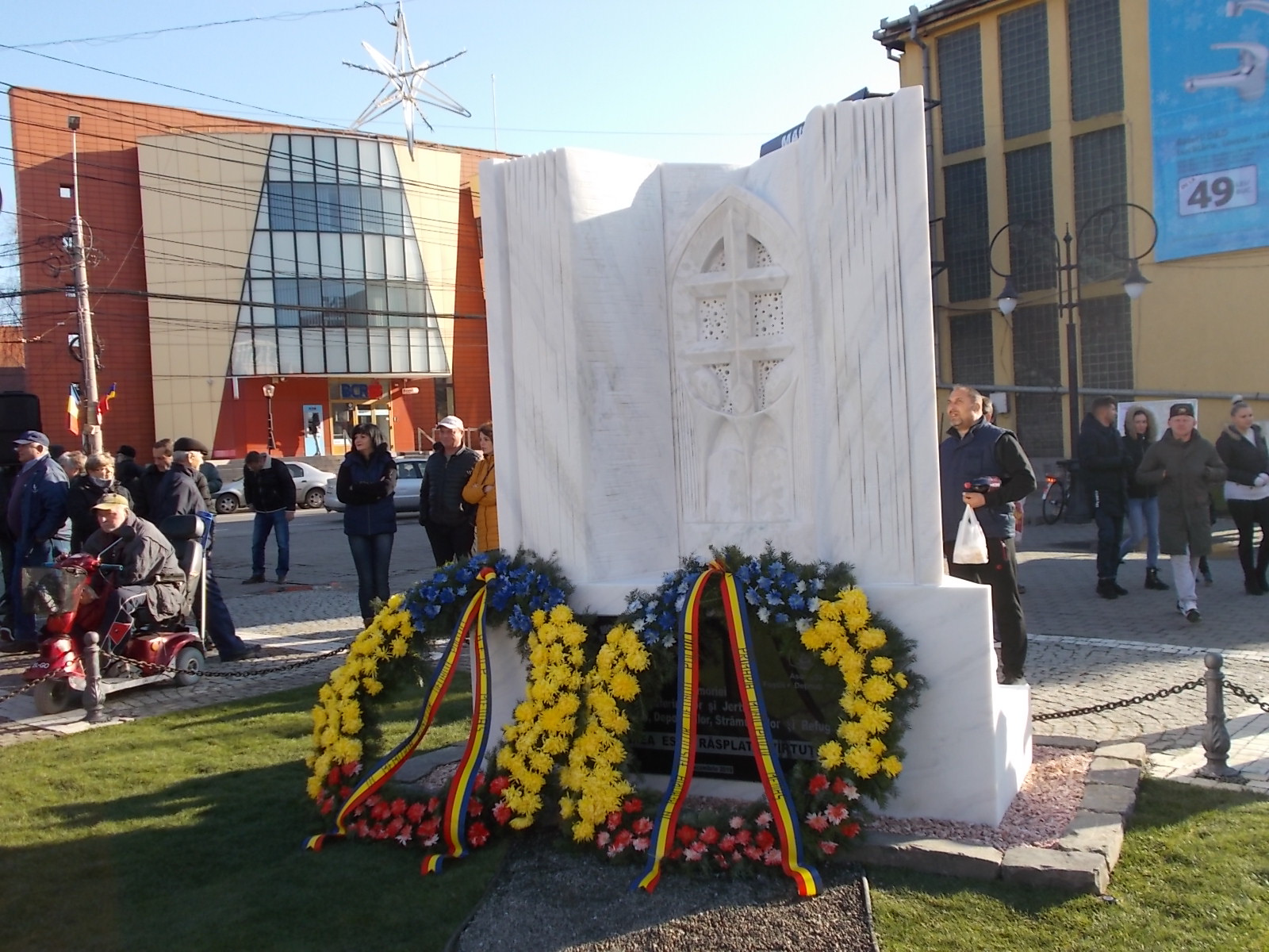 Monumentul care a fost ridicat în memoria foștilor deținuți politici a fost inaugurat de 1 Decembrie, în prezența oficialităților locale, a reprezentanților Asociației Foștilor Deținuți Politici din oraș, a unui sobor de preoți și numeroși medieșeni.