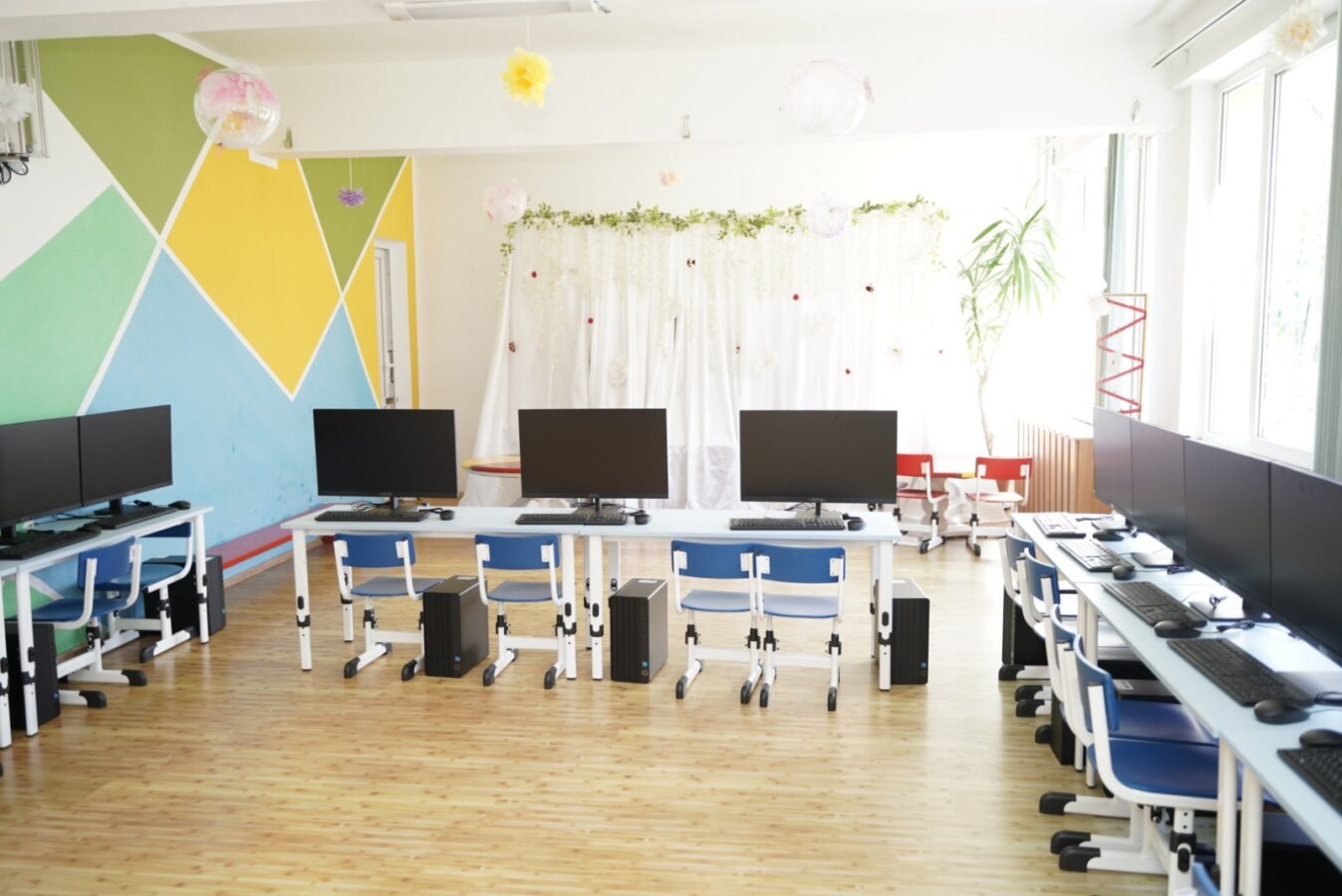 În același timp, sălile de clasă au fost dotate cu mobilier și materiale didactice moderne, care contribuie la crearea unui mediu educațional prietenos și adaptat nevoilor copiilor.
