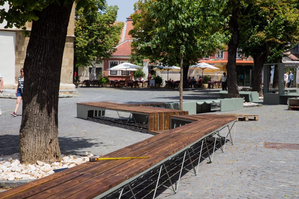 Mobilier în formă de zig-zag, din metal cu șezut de lemn, module de mobilier din beton armat și șlefuit, cu granule piatră, cu formă de triunghi cu laturile arcuite asimetric, banchete circulare din beton armat, îmbunătățit cu granul e piatră, de 60, 100 și 140 cm. Acestea sunt toate tipurile demobilier pe care le instalează firma care a primit contractul de la Primăria Sibiu și care va încasa pentru asta 287.59 de lei.