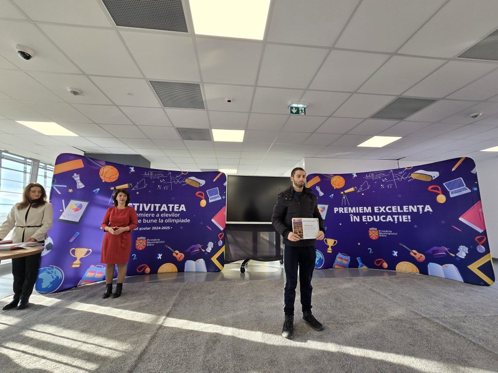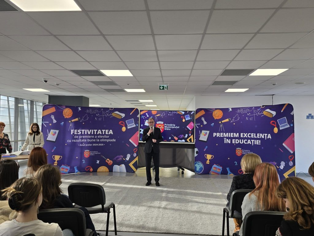 Primăria Sibiu a organizat joi o festivitate pentru premierea elevilor și echipelor de tineri care au participat la olimpiadele școlare în anul de studiu 2024-2025 și au obținut premii și mențiuni.