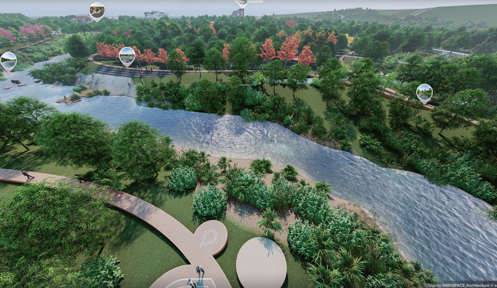 Edificarea zonei de Aqua Park va avea un cost estimat la 15 milioane de euro, indoor și outdoor, iar orizontul de construire este 2023 – 2026, un proces care include contractarea serviciilor de proiectare și SF, contractarea lucrărilor de execuție și execuția propriu-zisă. Cele mai lungi lucrări au un orizont de timp în 2030, respectiv lotul aferent centrului hipic, 2032, cea mai mare arteră propusă, cu patru benzi, și a unui parcaj subteran, dar și edificarea unui centru cultural pe malul Cibinului, cu orizont de timp 2033. Parcul public pe malul Cibinului ar urma să coste 12,4 milioane de euro, cu perioadă de edificare 2023 – 2026.