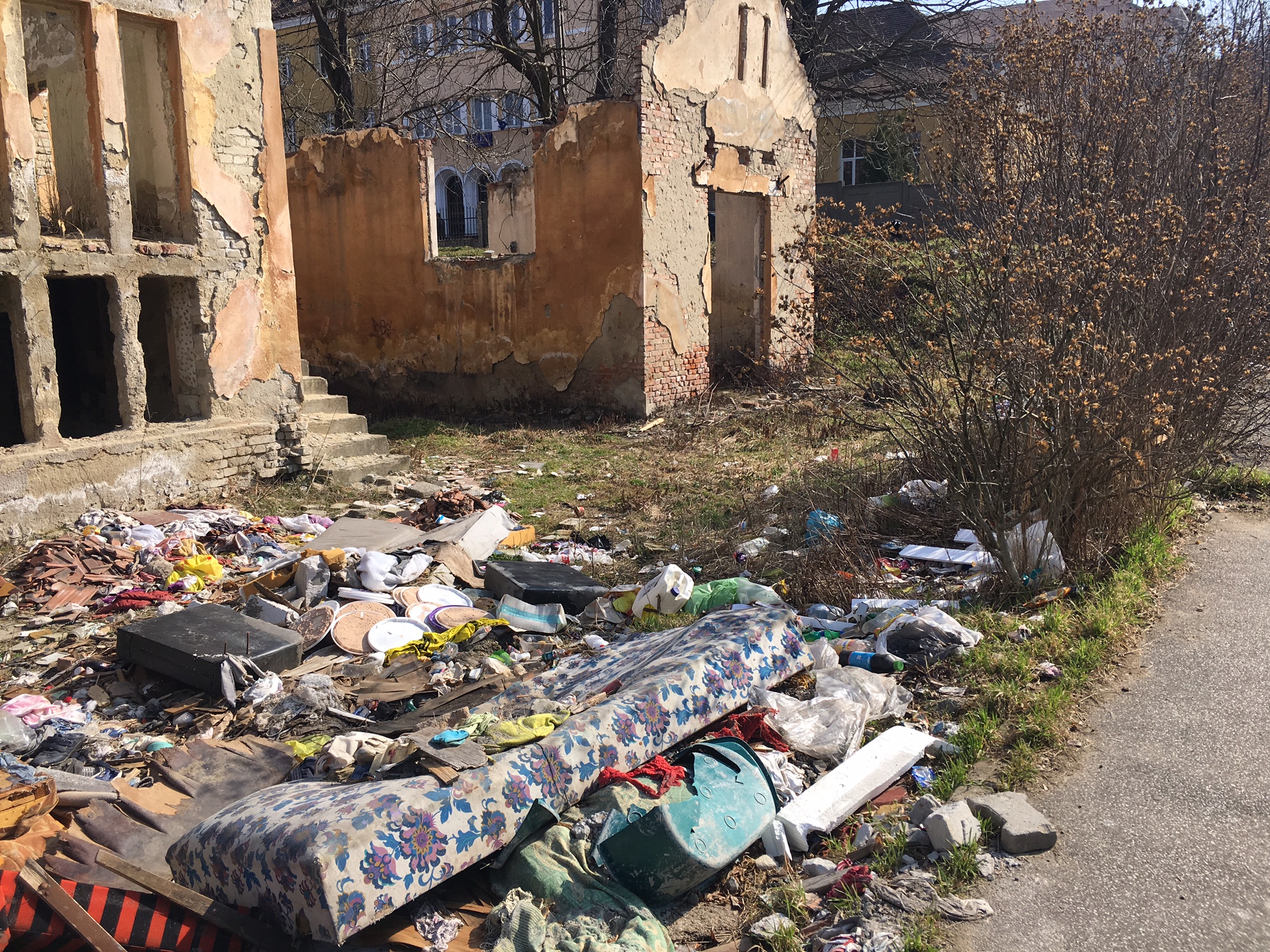 Greu de descris în cuvinte veritabila groapă de gnoi care se află la doar câțiva metri de sediul Transgaz Mediaș, dar și de o grădiniță. Lângă o clădire aflată în paragină a răsărit o adevărat groapă de gunoi, în locul respectiv ffind depozitate foarte multe deșeuri. Iar zona se află extrem de aproape de sediul Societății Naționale de Transport Gaze Naturale, dar și de o grădiniță din Mediaș. Joi în jurul amiezii, locul respectiv arăta ca după război, spre disperarea oamenilor care locuiesc în apropiere.
