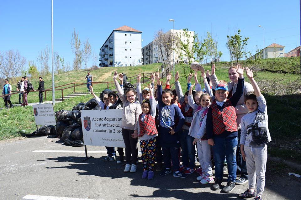 Luni, 10 aprilie, între orele 11-13, elevii unităţilor de învăţământ gimnazial şi liceal copşene au organizat, în colaborare cu Primăria oraşului Copşa Mică, o amplă acţiune de ecologizare a oraşului, pentru a putea întâmpina Sfintele Sărbători de Paşti cum se cuvine. Cei peste 400 de elevi, organizaţi pe echipe şi-au împărţit oraşul pe zone de acţiune, pe care le-au ecologizat exemplar. Înarmaţi cu mănuşi, saci menajeri şi multă veselie, elevii au reuşit, în timp de două ore, să adune o remorcă plină cu saci de gunoi. În acelaşi timp au dat un exemplu pozitiv tuturor locuitorilor oraşului care, impulsionaţi de entuziasmul copiilor, le-au sărit în ajutor. Acţiunea a fost supervizată de cadrele didactice din unităţile de învăţământ locale, de reprezentanţi ai Primăriei, de pompierii voluntari ai Serviciului Voluntar pentru Sitații de Urgență Copşa Mică şi de poliţişti locali.