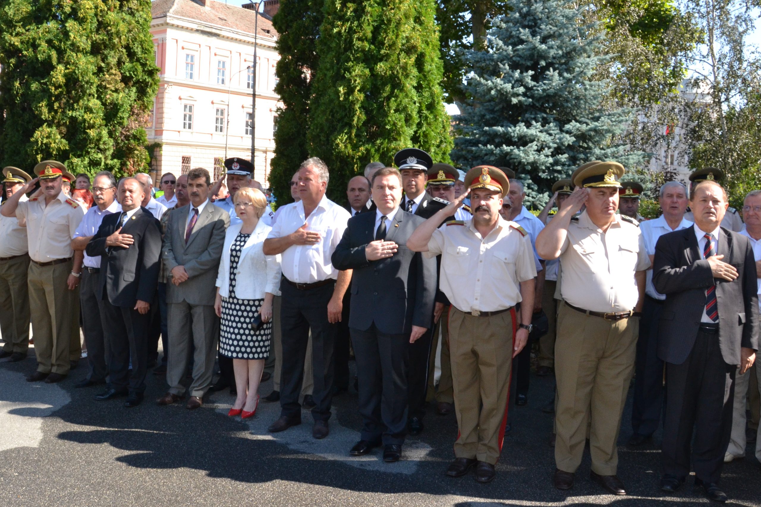 Câțiva zeci de sibieni, alături de oficialități locale, au fost prezenți astăzi la ceremonia organizată cu ocazia Zilei Imnului Național. Aceasta a avut loc Miercuri, 29 iulie, în fața Cercului Militar. După slujba religioasă, prefectul Sibiului Ovidiu Sitterli și primarul interimar Astrid Fodor au ținut un discurs despre istoria, importanța, însemnătatea și emoția pe care o transmite „Deșteaptă-te române”, atunci când este intonat. Cel care a dat tonul imnului națiopnal, în fața Cercului Militar a fost Ghiță Bârsan, comandantul Garnizoanei Sibiu, care a anunțat prezența la eveniment a promoției de tineri ofițeri 2015 și încheierea evenimentului cu defilarea Gărzii de Onoare.