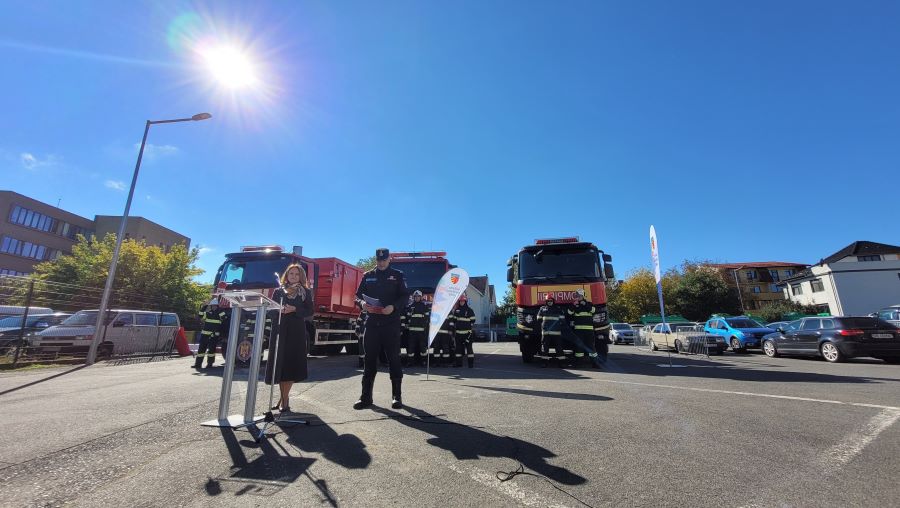 La eveniment au participat Daniela Cîmpean, președintele Consiliului Județean Sibiu, locotenent-colonel Anastasiu Laurențiu, împuternicit inspector-șef al ISU Sibiu, echipaje de pompieri și reprezentanți ai presei. În ultimii patru ani, administrația județeană a alocat constat fonduri pentru dotarea pompierilor sibieni, între echipamentele achiziționate aflându-se o cisternă-container pentru apă, camere cu termoviziune, sonar pentru căutarea persoanelor dispărute în lacuri sau râuri, bazine portabile și un container pentru neutralizarea incendiilor produse la mașinile electrice sau hibride.