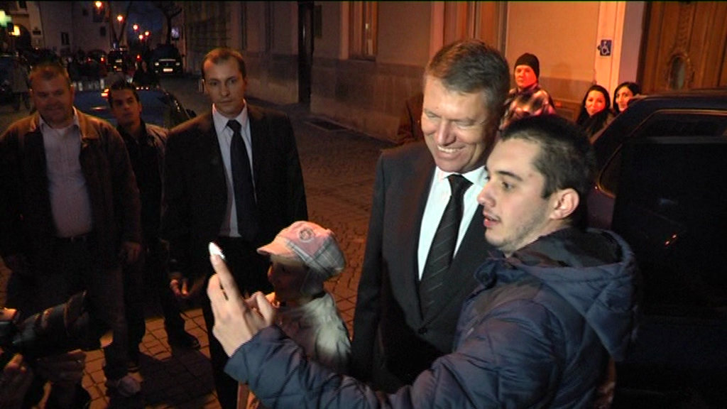 Oamenii l-au așteptat pe Klaus Iohannis până când a ieșit din primărie iar mulți dintre ei și-au făcut și poze cu noul președinte al României.