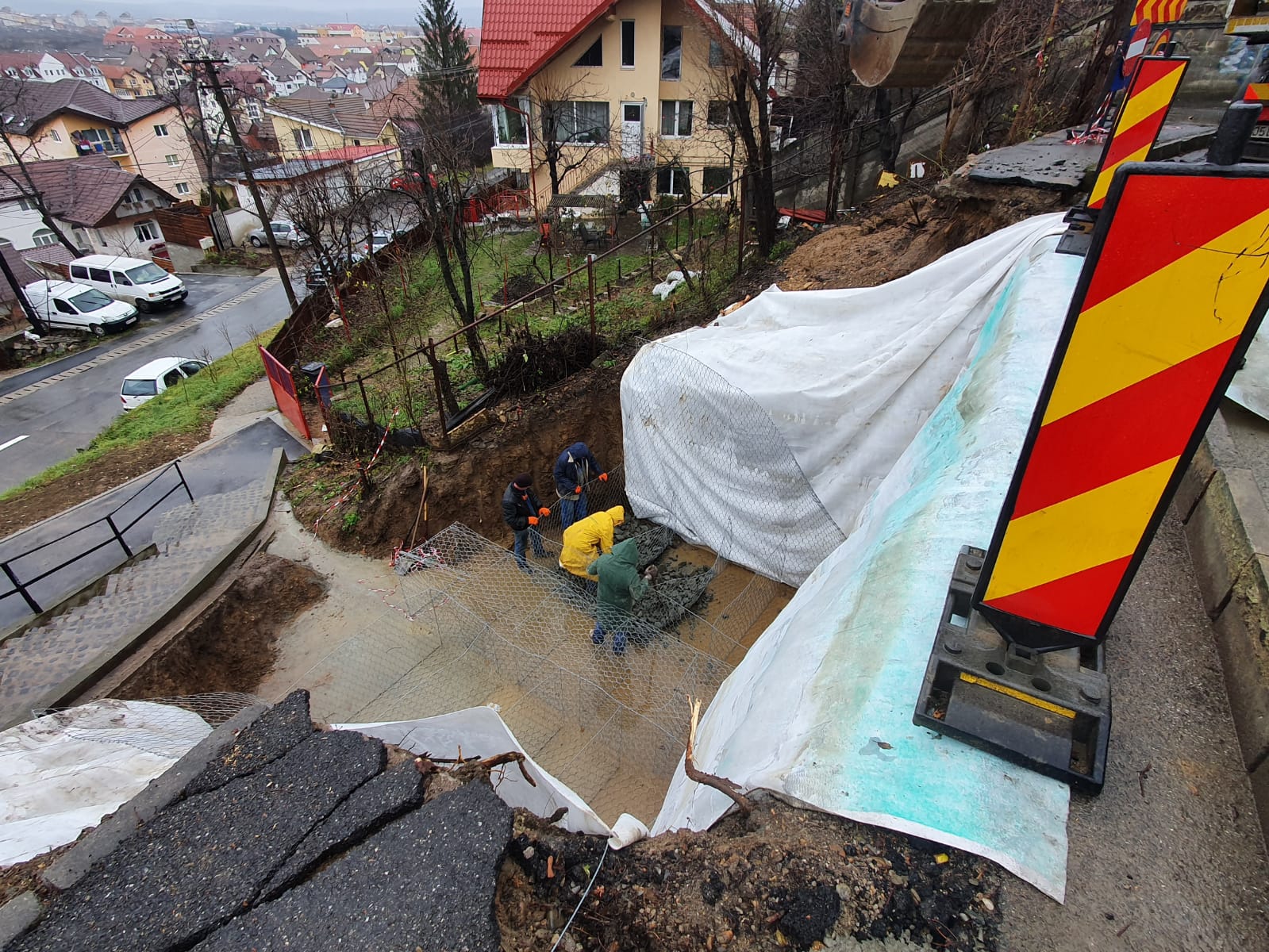 „Lucrările presupun consolidarea taluzului cu un sistem de gabioane (casete metalice umplute cu pietre). De asemenea, pentru scurgerea mai eficientă a apei de ploaie se va realiza un cămin de scurgere suplimentar. Trotuarul și carosabilul afectate se vor repara la finalul lucrărilor”, transmit reprezentanții Primăriei Sibiu.