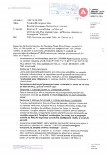 „Certificatul de urbanism nr. 2128 din 10.09.2018 emis de Primăria Municipiului Sibiu nu respectă prevederile aferente PUG Sibiu, iar pentru realizarea obiectivelor menționate în cererea de emitere a acestuia este necesară elaborarea unei documentații de urbanism de tip plan urbanistic zonal. Intervenția propusă produce efecte importante asupra organizării parcelei sau funcționării zonei. Nu sunt create condițiile necesare pentru o dezvoltare unitară, armonioasă a întregii zonei și în relație cu vecinătățile. Procedura propusă – elaborare PUD -este neadecvată, iar intervenția propusă nu este integrată în context”, a transmis președintele filialei Sibiu – Vâlcea a Ordinului Arhitecților din România.