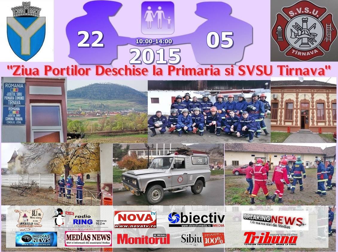 Ziua Portilor Deschise Tirnava 2015 bunComuna Tîrnava organizează pentru prima dată evenimentul „Ziua Porților Deschise la Primăria și SVSU Tîrnava“, care își propune să aducă mai aproape de cetățeni întreaga activitate desfăşurată de instituție.