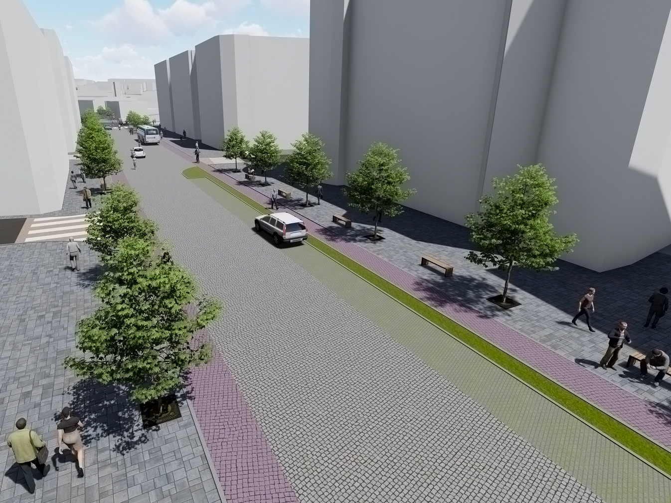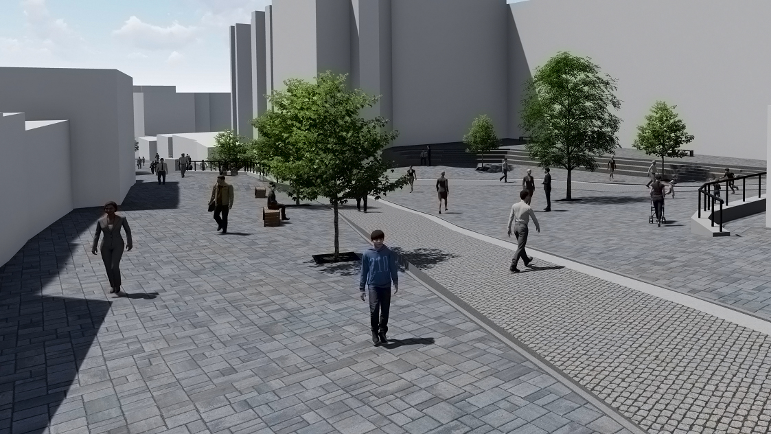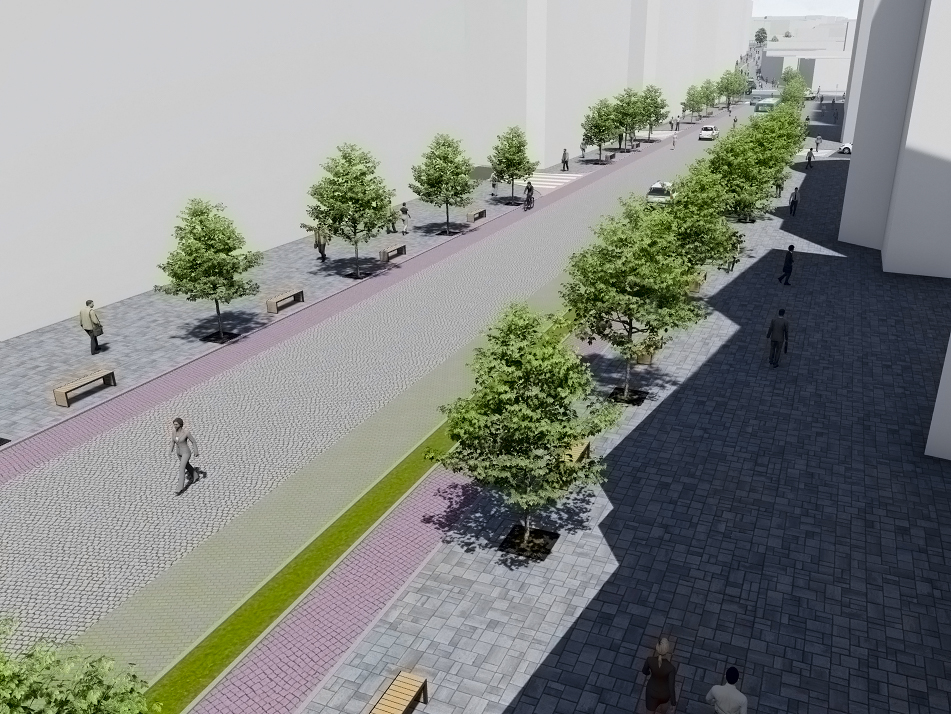 Traseul pietonal care va lega zona Gării de Piața Mare, pe strada General Magheru până la strada Filarmonicii și respectiv pe strada Avram Iancu, presupune reconfigurarea spațiului public care să îl facă mai atractiv și mai sigur pentru deplasarea pietonilor. Lucrările vor presupune reamenajarea drumului și a trotuarelor care vor fi pavate cu calupuri de piatră, în ton cu specificul zonei istorice. Un accent deosebit se va pune pe spațiile verzi care vor face acest coridor atractiv și estetic. Investiția este estimată la 16,8 milioane de lei.