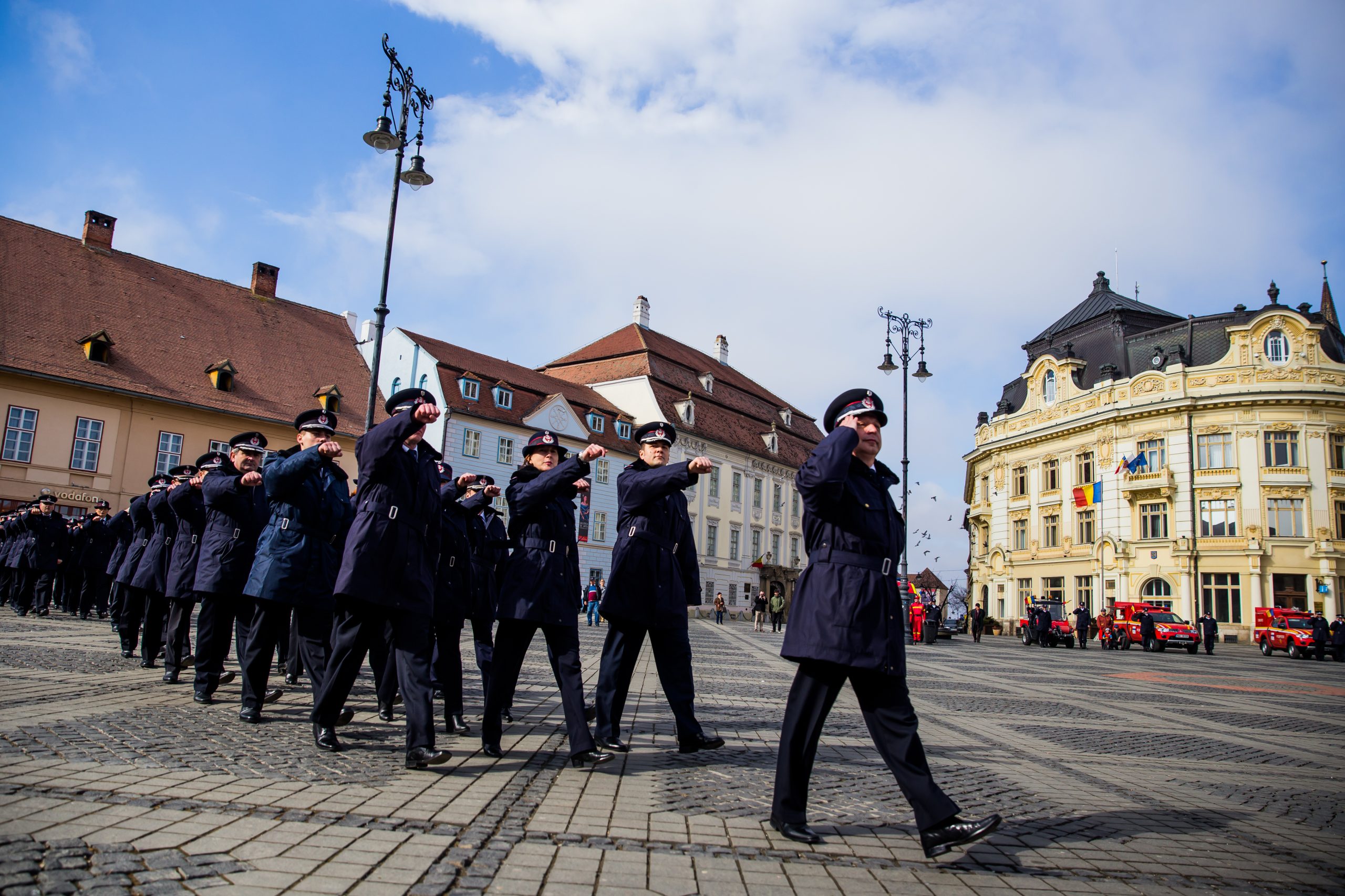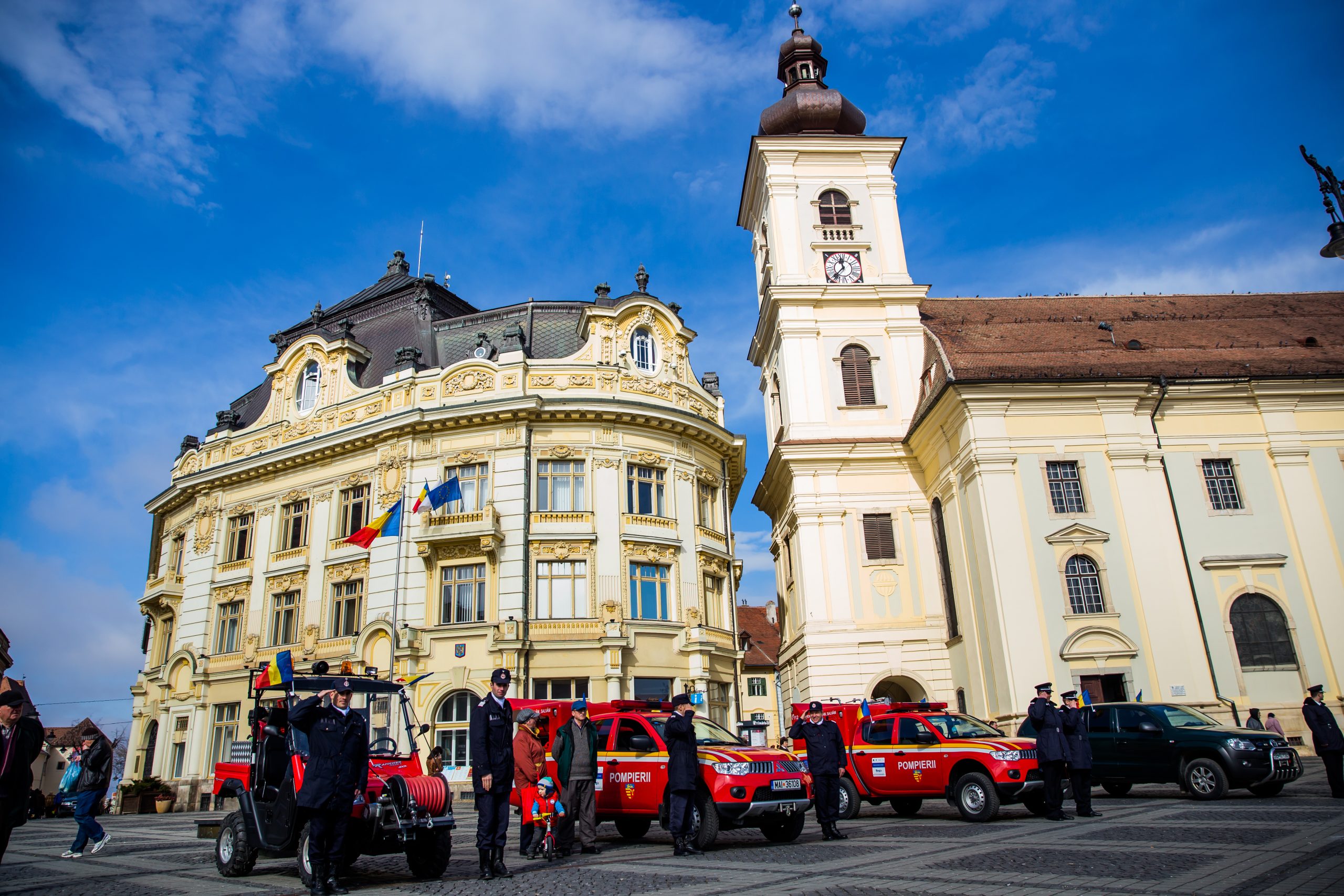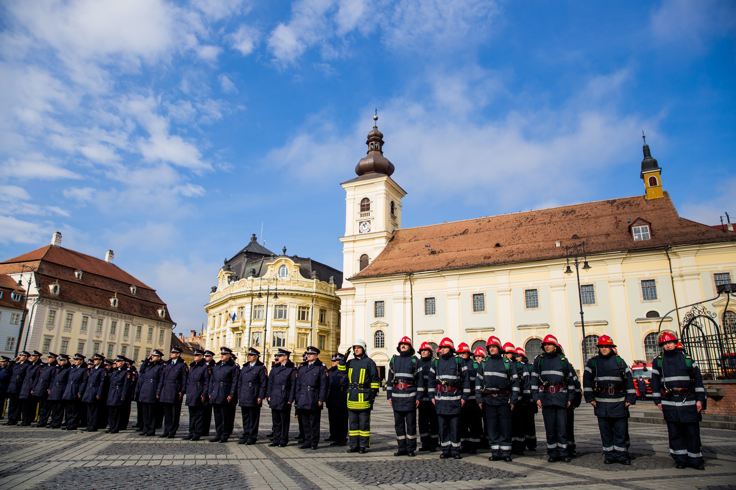 Vineri, 27 februarie, a avut loc în Piața Mare, din Sibiu o acțiune organizată de Inspectoratul pentru Situaţii de Urgenţă „Cpt. Dumitru Croitoru”, dedicată „Zilei Protecției Civile din România”. În cadrul său, participanții au putut urmări discursurile oficialităților locale prezente și ale oficialităților naționale, care și-au transmis mesajele prin reprezentanți, urmat de un ceremonial militar de ridicare în gradul următor, înainte de termen, a trei cadre militare din cadrul I.S.U. și de o expoziție de tehnică. „Dragi colegi avem de continuat o tradiție pe care nu o putem înfăptui decât prin dăruire exemplară și prin muncă asiduă puse în slujba celor aflați în pericol. Să acționăm în continuare pentru a conferi încredere și siguranță cetățenilor demonstrând profesionalism și eficiență. De ziua noastră vă urez tuturor mult succes în activitatea profesională, împliniri în viața personală, sănătate și bucurii alături de cei dragi. La mulți ani”, a spus colonel Laurențiu Cosmin Balcu, inspector Șef ISU Sibiu, în discursul său.