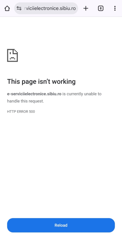 La doar câteva ore după ce pe canalele oficiale s-a anunțat că „a început încasarea taxelor și impozitelor locale pentru 2026”, sibienii care au încercat să acceseze portalul e-administratie.sibiu.ro au fost întâmpinați de mesaje de eroare sau pagini care nu se încarcă.