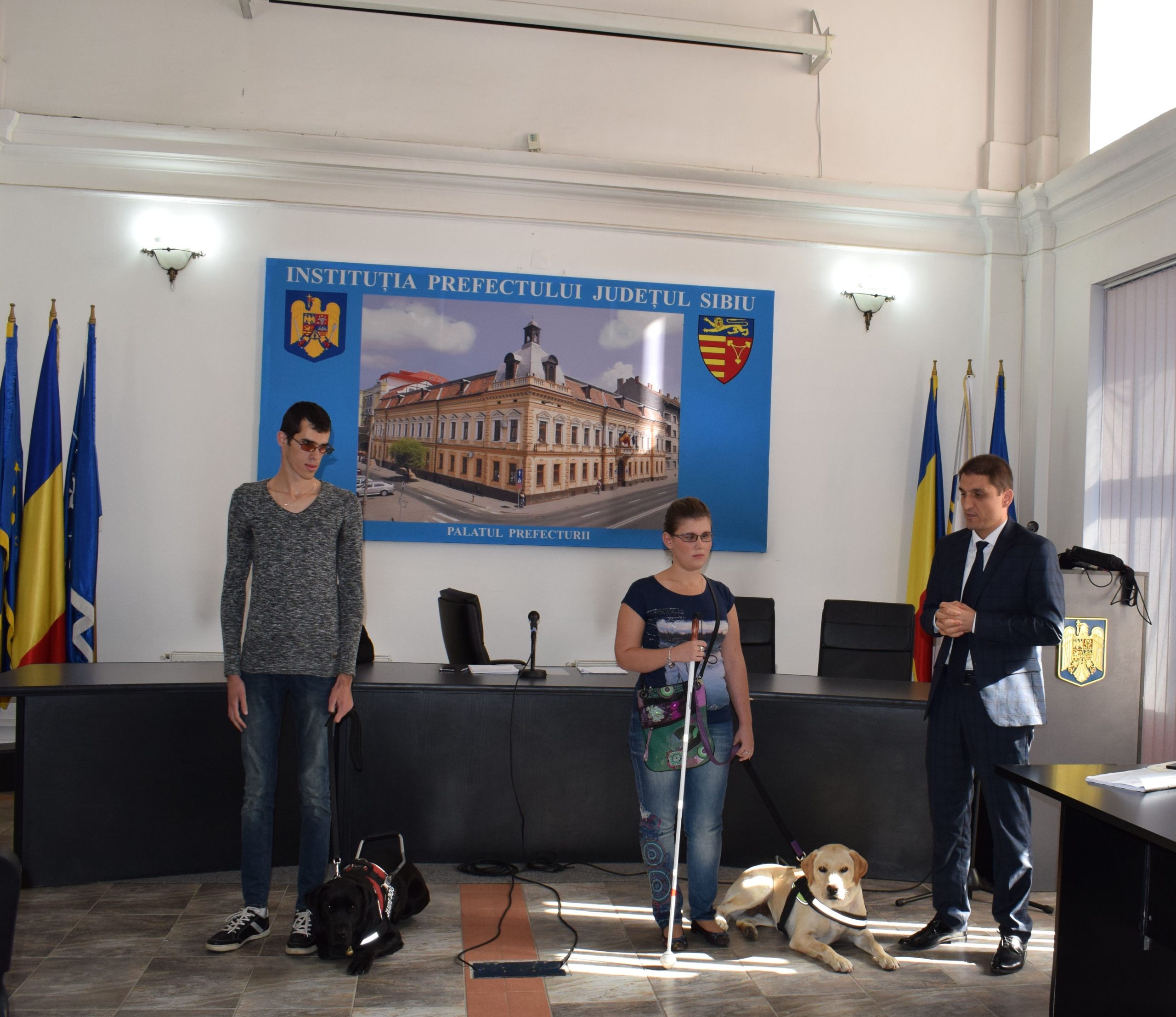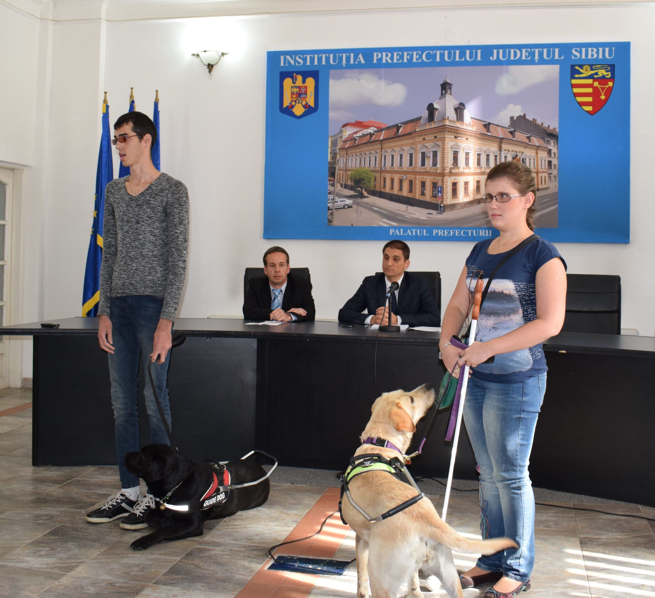 „Mi-a fost adus la cunoştinţă faptul că au existat situaţii în care unele persoane nu au avut voie să intre cu câinele-ghid în diferite locuri publice. De aceea, vreau să aduc la cunoştinţa tuturor directorilor instituţiilor care participă la Colegiul Prefectural şi prin intermediul mass-media, la cunoştinţa întregii populaţii, că există o lege care le dă dreptul persoanelor cu handicap grav să fie însoţite de către un câine ghid, special pregătit să protejeze oamenii aflaţi în dificultate”, a declarat prefectul Cristian Roman.