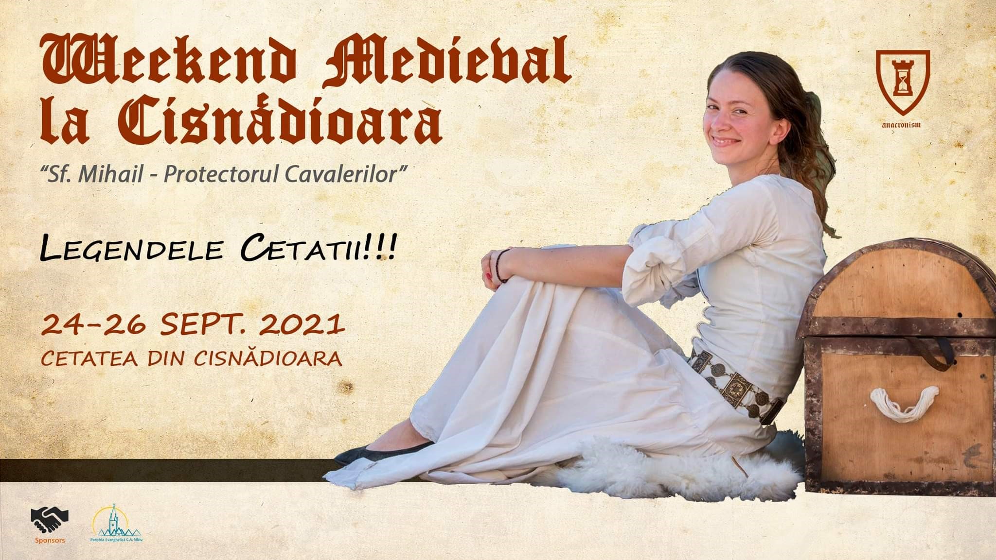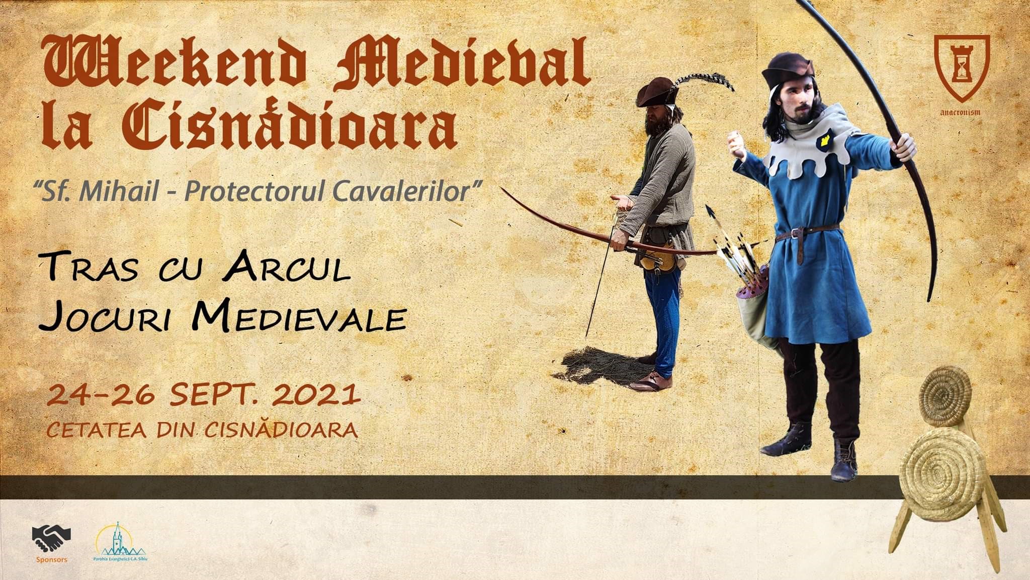 Grupul de reconstituire Anacronism în colaborare cu Parohia Evanghelică Cisnădioara vă invită la Cetatea din Cisnădioara unde în perioada 24-26 septembrie 2021 veți putea avea parte de trei zile ca-n povești, la evenimentul Weekend Medieval la Cisnădioara.