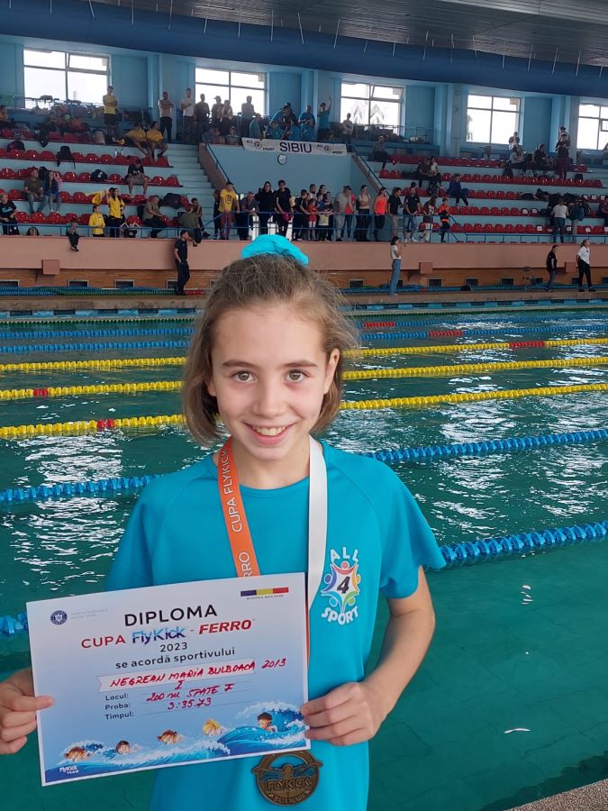 În condițiile în care Sibiul nu are un bazin sportiv destinat celor care vor să facă performanță în înot, antrenamentele au fost ținute la Aria Cisnădie, cu eforturi considerabile din partea părinților și a Primăriei. Conducerea clubului mulțumește pe această cale susținătorilor acestor campioni și se pregătește de faza națională, care va avea loc peste o lună.