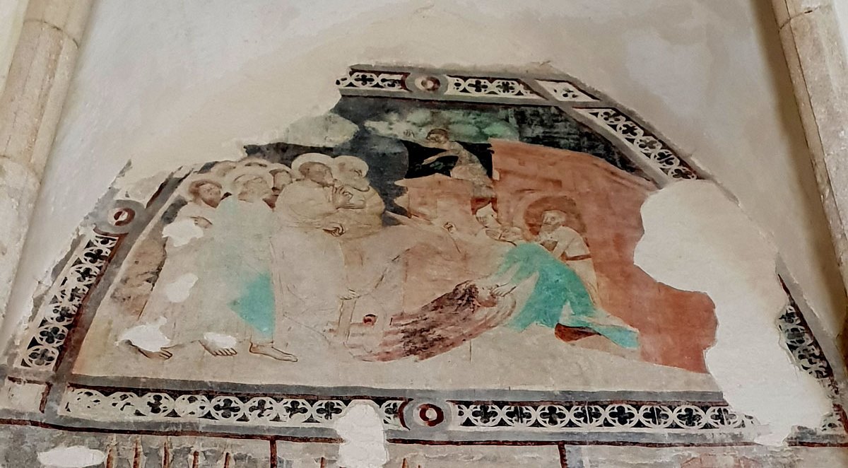 Când am ajuns în Curciu, lăcașul era în renovare, așa că a fost necesar să îmi fac loc printre mobilierul stivuit însă chiar și așa, am fost încântată să descopăr interiorul cu o arhitectură impresionantă. Aici am admirat arcade, ferestre cu ancadramente dantelate, picturile murale, banchete albastre dar mai ales, stelele funerare romane zidite în pereți. Picturile de pe fațada corului ilustrează scene din Patimile lui Hristos și pe Sf. Cristofor.