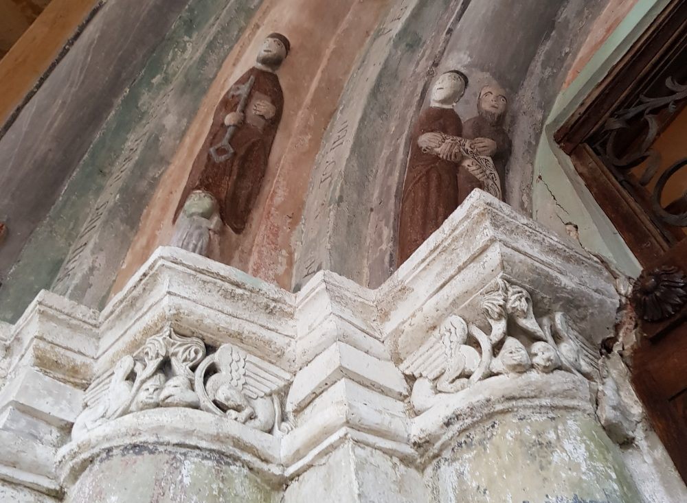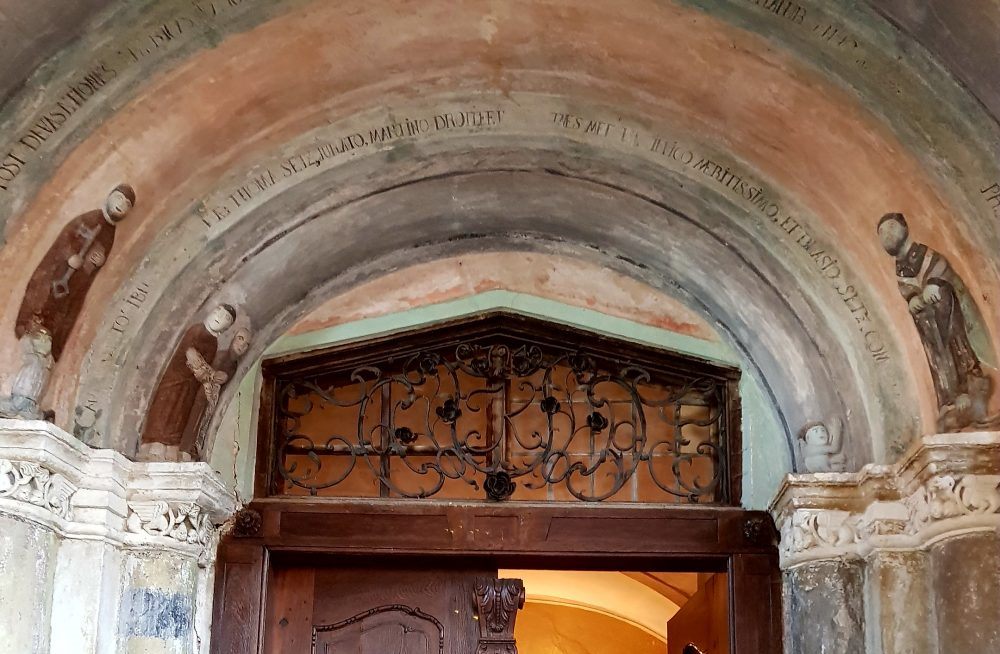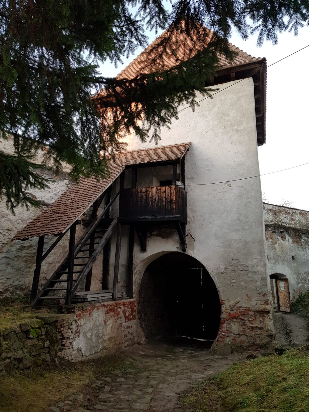 Scările care urcă înspre portalul vestic al bisericii, te conduc către un lăcaș de cult extrem de bine îngrijit, cu o curte perfect aranjată. Intrarea în biserica este frumos decorată cu simboluri reprezentând himere, lilieci și capete de oameni. Se zice că acest interesant portal a fost realizat de meșteri din Viena, după modelul Catedralei Sfântului Ștefan, aflată în centrul capitalei Austriei.