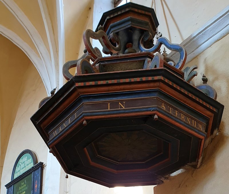 Din altar, am mai gasit doar masa de piatră și o cruce. Inexistent este și vechiul dulap în stil baroc în care era încastrată orga. Baldachinul amvonului realizat în stil baroc încă se mai poate vedea în biserică.