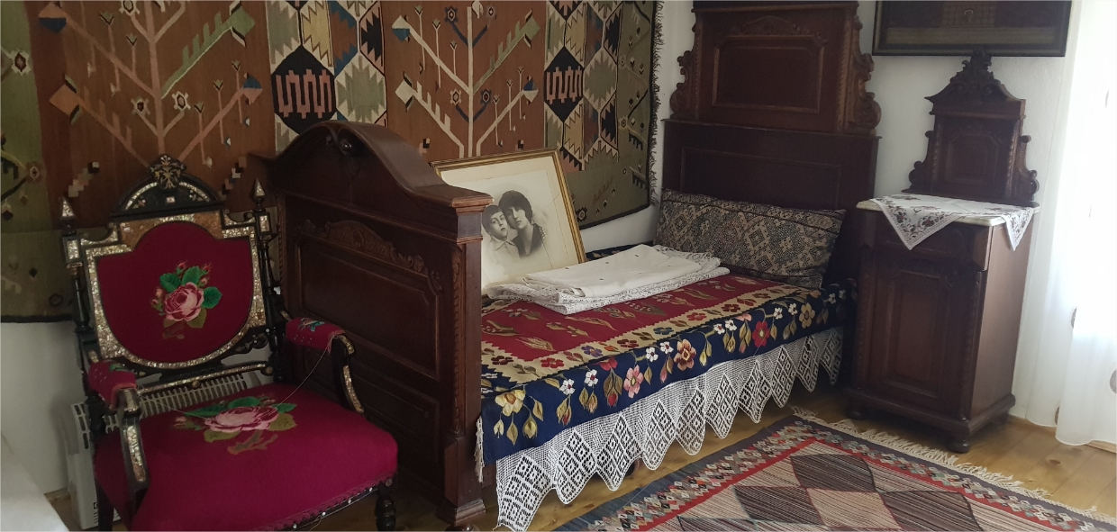 Cele două dormitoare sunt mobilate simplu, cu paturi cu tăblii, tablouri și icoane, bufet cu oglindă, scaune cu tapiserii în culori aprinse și lămpi vechi.