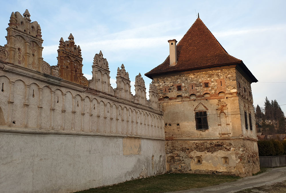 Pentru a evidenția influența principelui în viața politică și administrativă, s-a dorit realizarea unei construcții unice în Transilvania. Astfel, au apărut cornișele decorate și pictate, cele patru bastioane cu inscripții, frescele, blazonul familiei și poarta impozantă.