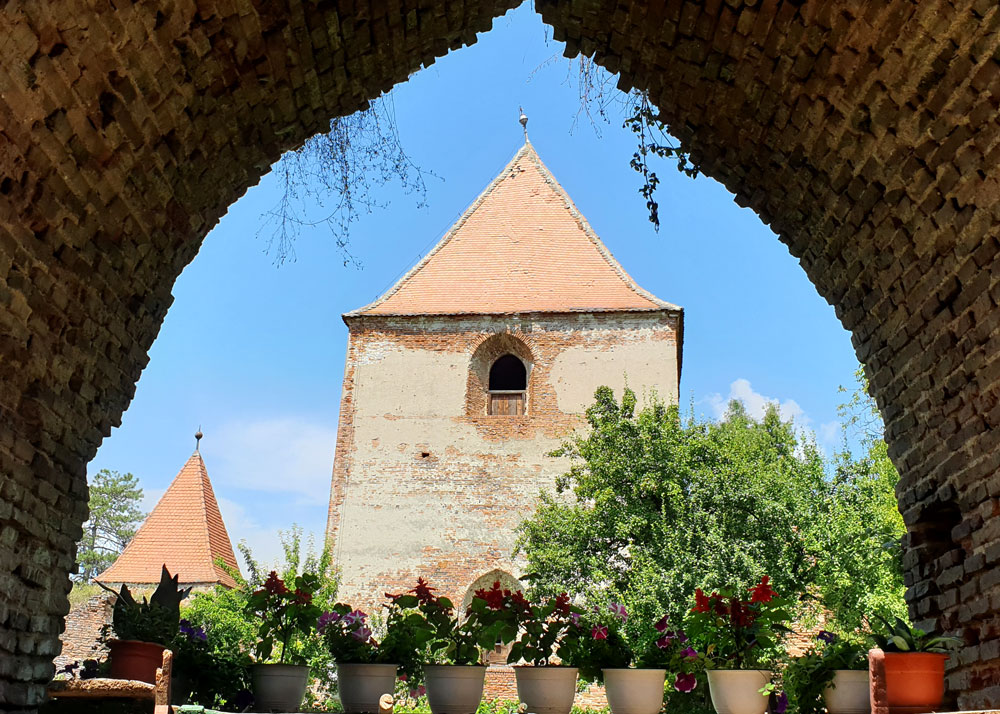 Cetatea Slimnicului are o arhitectura diferită datorită faptului că acum câteva sute de ani, s-a început construcția unei biserici gotice, biserică ce nu a fost finalizată niciodată. Urmele acestui impresionant lăcaș sunt chiar aceste ziduri care încă mai stau în picioare. Datorită perioadei invaziilor turcești, oamenii locului au renunțat la ideea finalizării proiectului, concentrându-se pe întărirea zidurilor fortificate. Din acest punct se deschide o imagine perfecta asupra curții, cu vechile clădiri încadrate de arcade și flori.