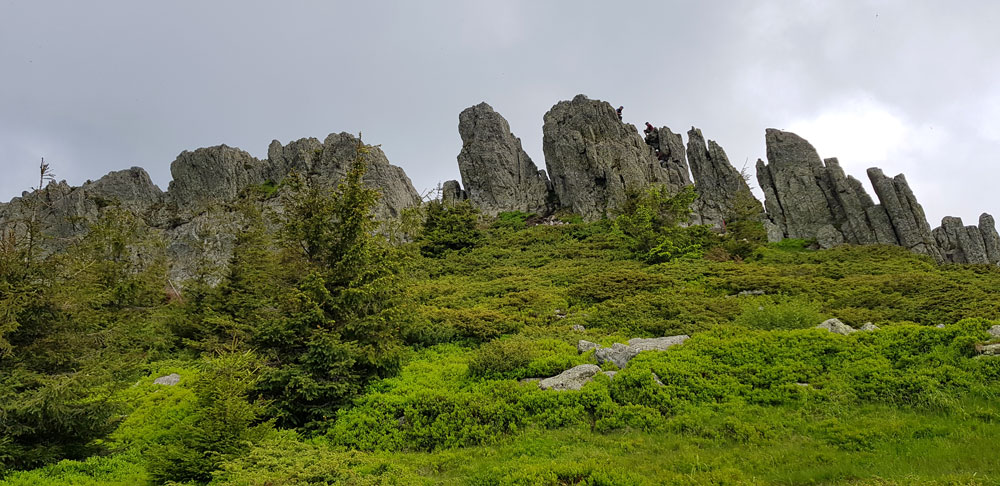 Întreaga experiență este frumoasă însă ceea ce am găsit în vârf, a fost cu totul exceptional. De aici, imaginea asupra munților, a cerului care pare că este atât de aproape dar și a așezărilor contopite cu natura, este una ireală. Aici este și cea mai fotografiată zonă, stâncile fiind principalele puncte de atracție pentru cei pasionați de fotografie sau pentru cei aflați în căutarea unor cadre pentru amintiri memorabile. Stâncile semețe ce se întind către nori, aerul curat iar masa servită în acest mediu sunt doar câteva din motivele pentru care recomand să parcurgeți acest traseu.