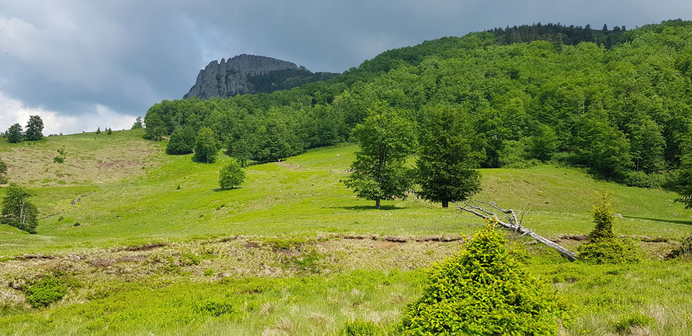 În cei 7 km parcurși până la creastă, am găsit peisaje diferite, acestea schimbându-se treptat, pe măsură ce mă apropiam de creastă, de la poteci prin păduri și drumuri line pe pajiști până la stânci abrupte.