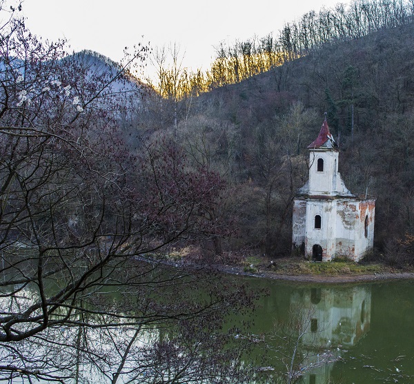 În coada lacului, ruinele celorlalte două biserici, cea ortodoxă la care veneau enoriașii din Baia Craiului și Bălana iar la mică distanță de aceasta, biserica romano-catolică din Baia Craiului, singura care mai are zidurile intregi.