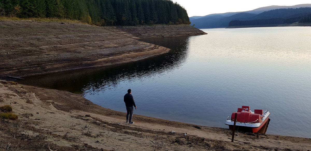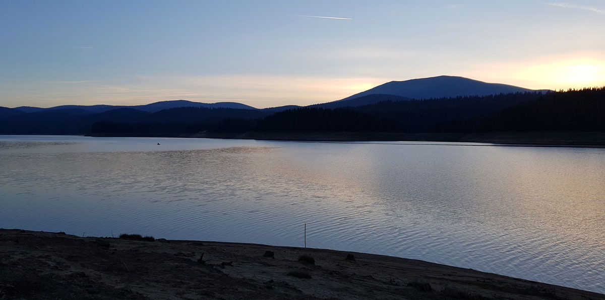 Lacul Oașa pare ținut în brațe de infinita natură.