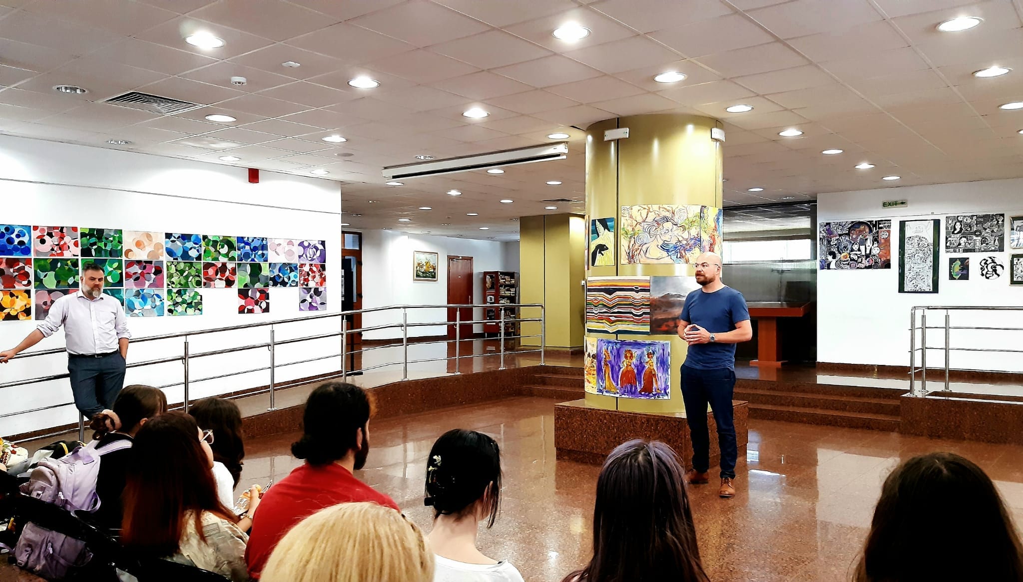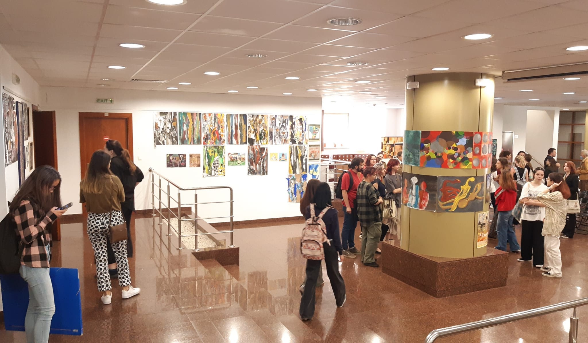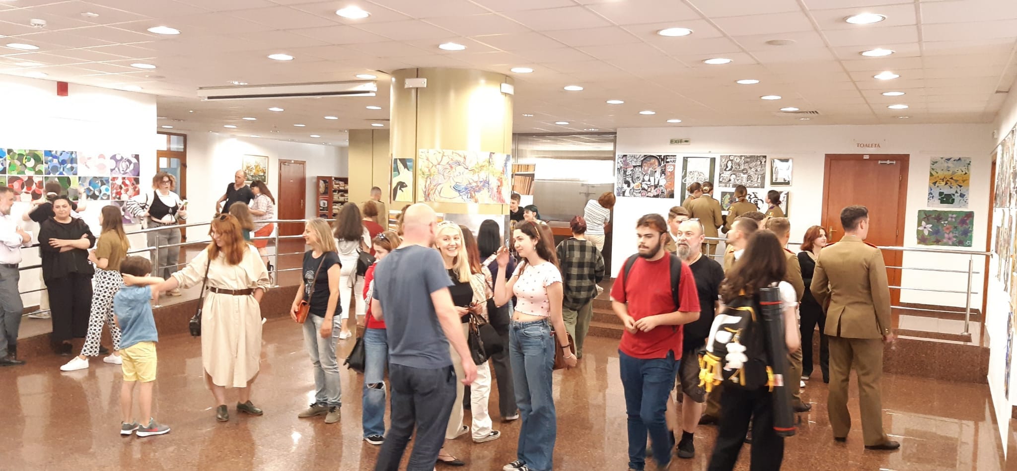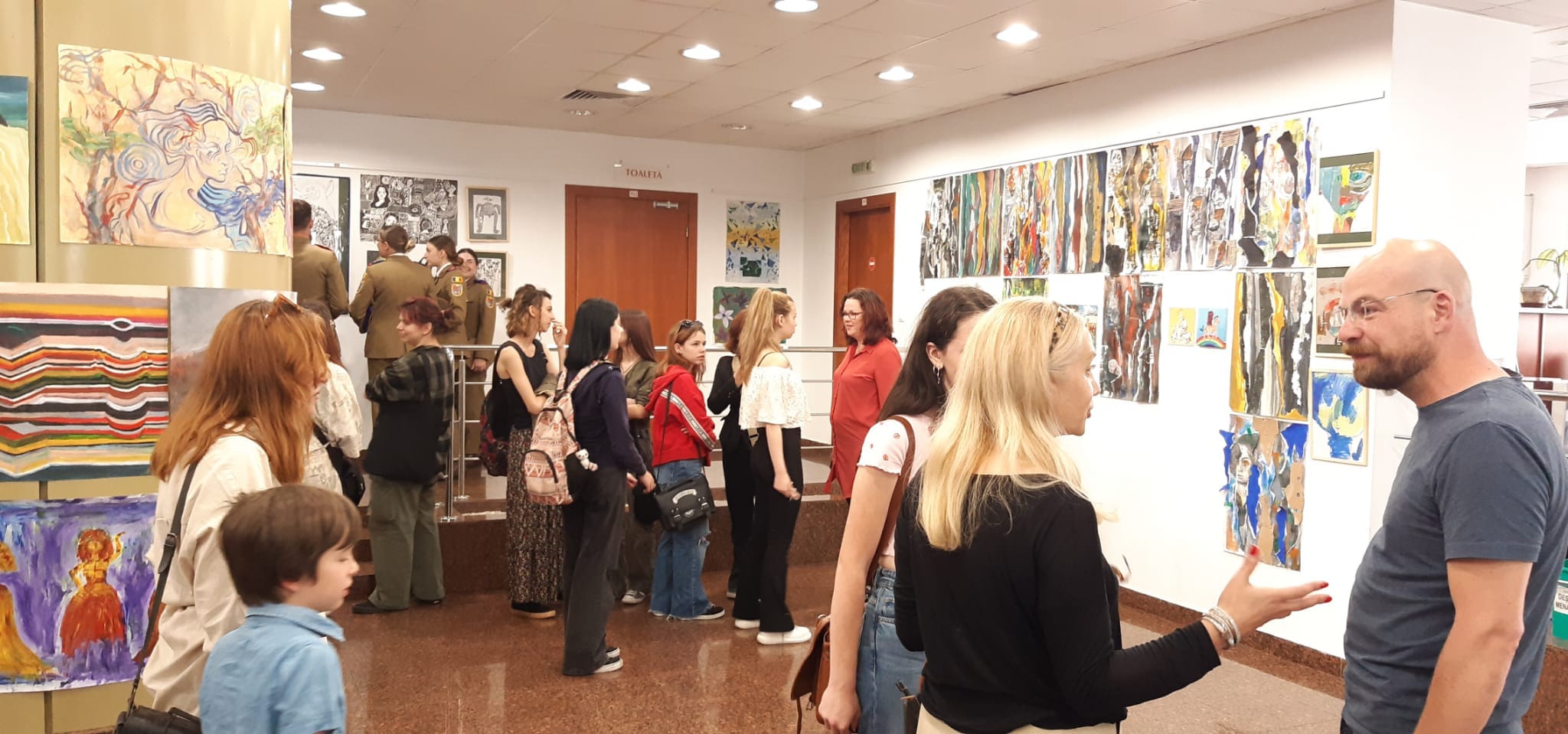 Expoziția de pictură și intervenție grafică a elevilor de la Liceul de Artă Sibiu a fost deschisă, astăzi, în foaierul Corpului B al Bibliotecii Județene ASTRA. Cei care semnează creațiile sunt elevii claselor a VII-a și IX-a. Alături de ei, astăzi, s-au aflat coordonatorul proiectelor, prof. Florin Viorel, cadru didactic și președinte al UAP Sibiu, părinți și susținători ai tinerilor artiști.