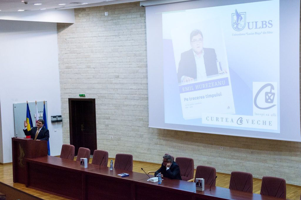 Jurnalistul și ambasadorul României la Berlin, Emil Hurezeanu, a lansat astăzi, 11 decembrie 2015, la Sibiu, volumul „Pe trecerea timpului. Jurnal Politic românesc 1996-2016”. Cartea, publicată la editura Curtea Veche, cuprinde o antologie de articole publicate de Emil Hurezeanu și ilustrează evoluția societății românești în ultimii 20 de ani.