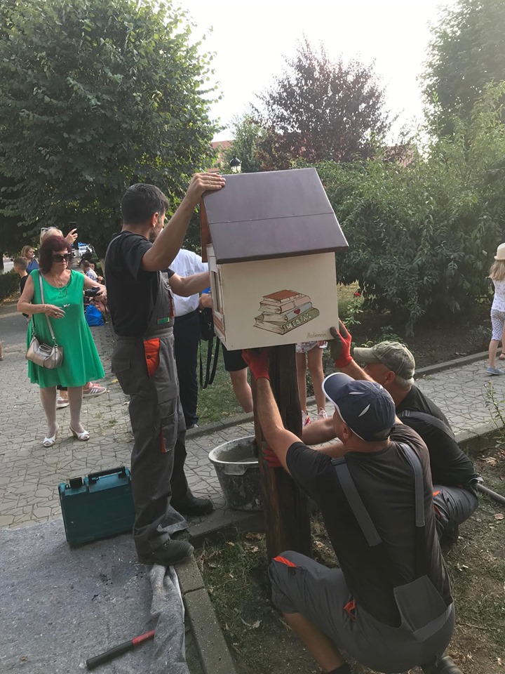 O parte din proiect a fost lucrat la Viena, unde locuim acum, iar restul a fost muncit acasă, o parte de către niște colegi de-ai mei din Mediaș și un suport a venit și dinspre Primăria Mediaș, cu care am lucrat în ultimele săptămâni pentru a obține avizul de care este nevoie pentru amplasarea unei astfel de biblioteci stradale.