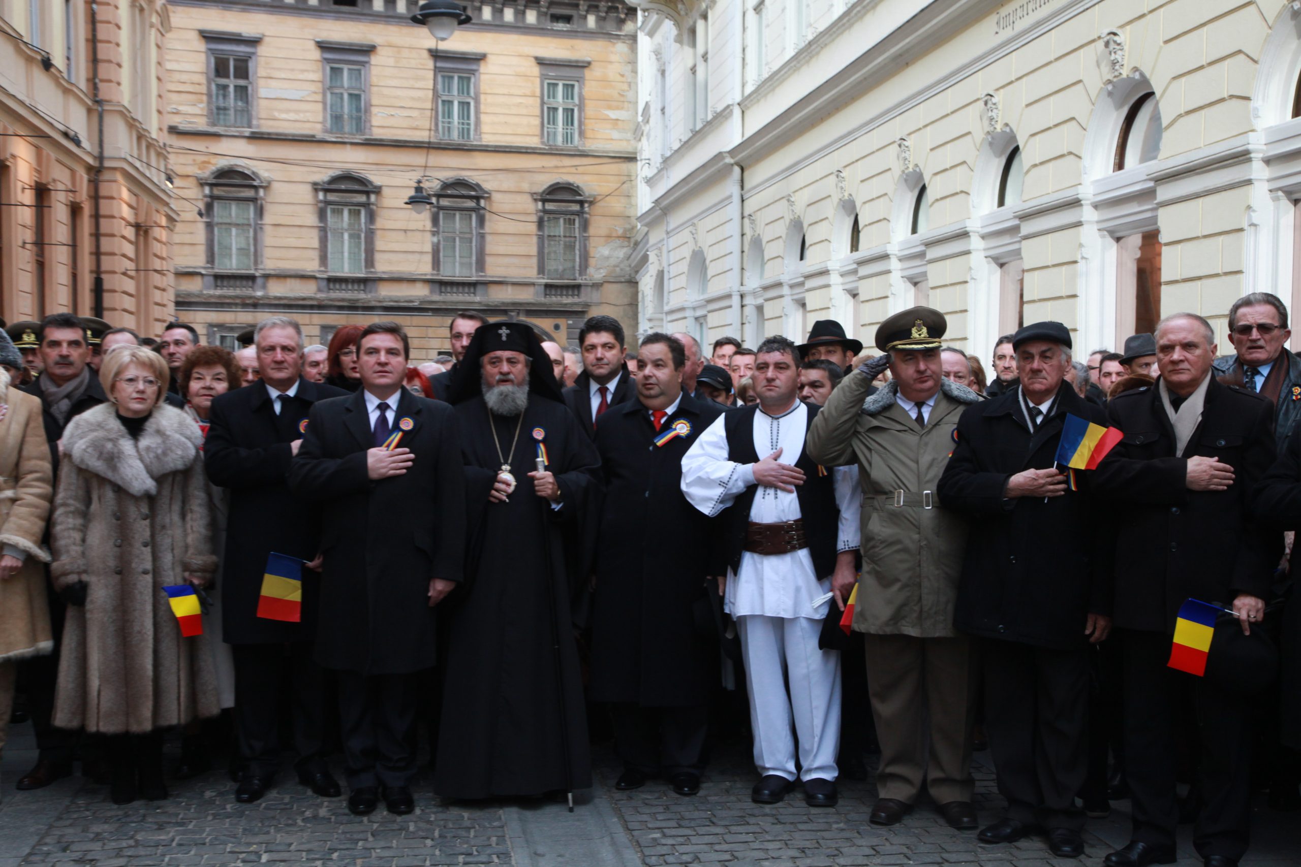 Mitropolitul Ardealului, ÎPS Laurenţiu Streza a oficiat o slujbă religioasă în memoria eroilor neamului, iar cele 36 de coroane de flori au fost apoi depuse în acordurile fanfarei Garnizoanei Sibiu.