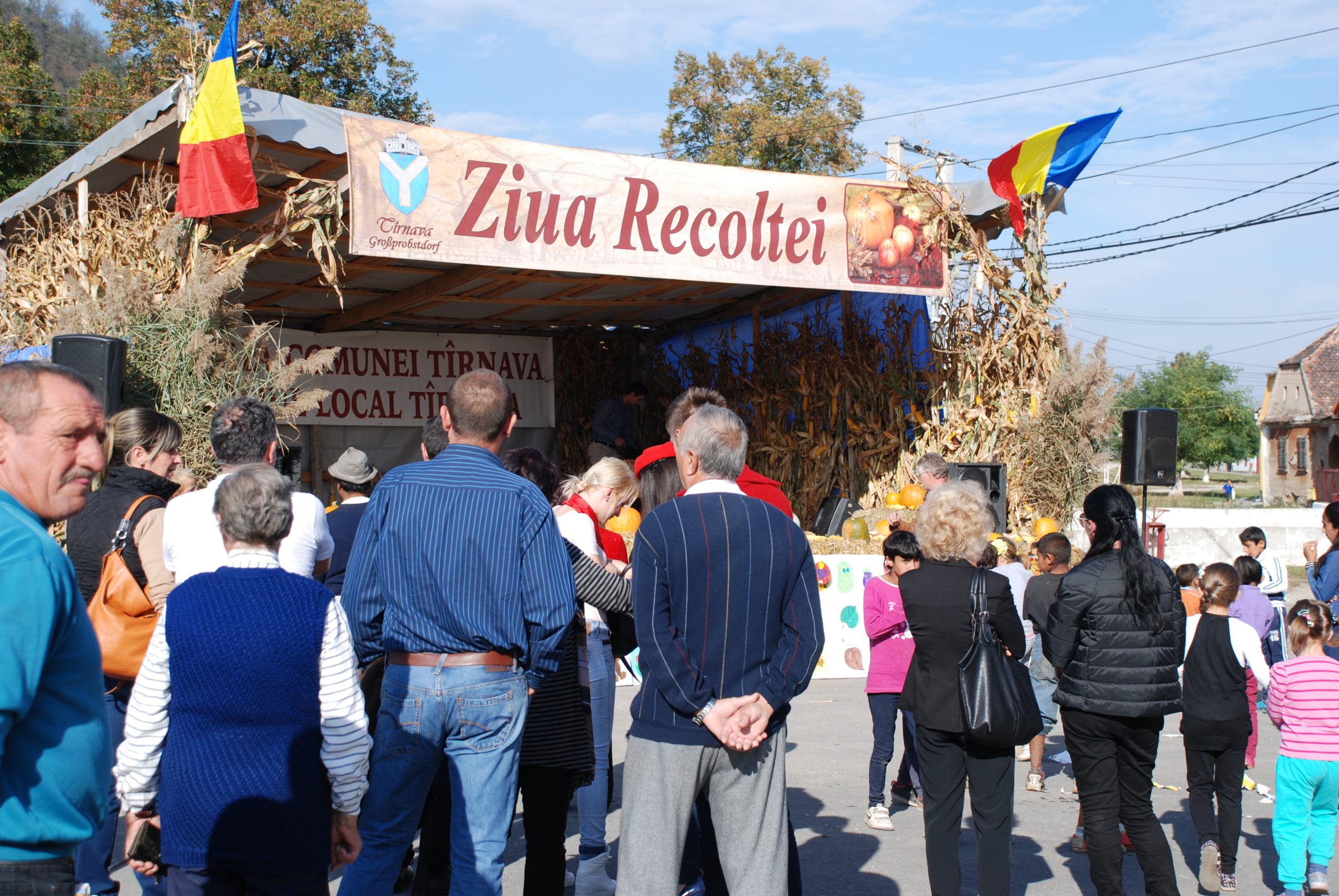 ziua recoltei - tirnava 2014 micComuna Tîrnava a marcat duminică, cea de-a doua ediție a evimentului cultural „Ziua Recoltei”. Producătorii locali au aranjat cu mult bun gust fructele şi legumele pregătite special cu această ocazie, gospodinele având ocazia să îşi umple cămările cu produse comercializate la preţuri acesibile. Cei prezenţi la manifestare au putut admira expoziţia de animale şi produse tradiţionale, participând în același timp la diverse concursuri specifice acestui anotimp.