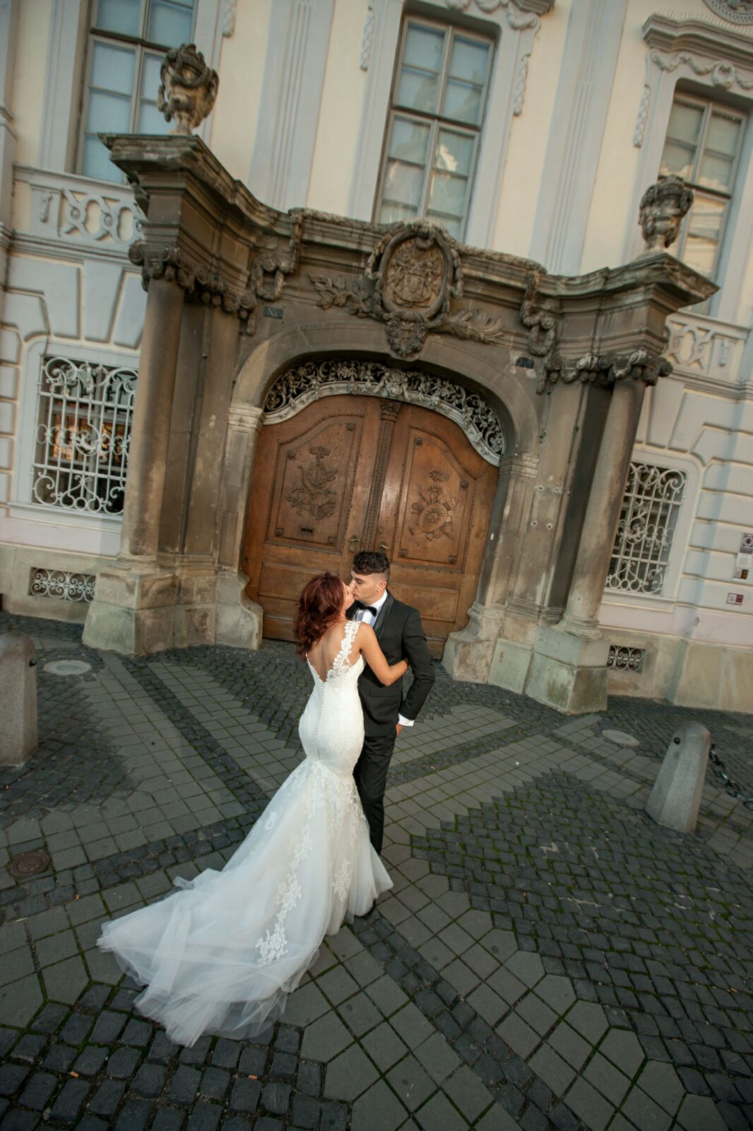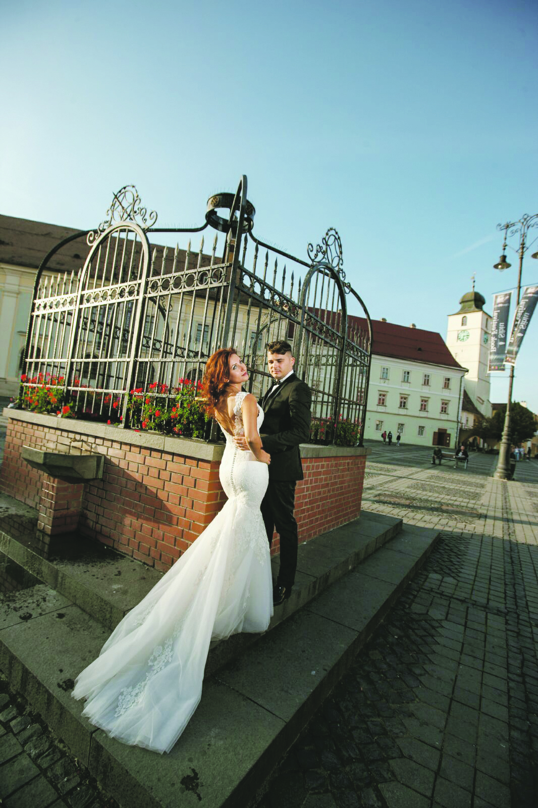 „Ideile fotografiilor realizate pentru albumul de nuntă reprezintă, de cele mai multe ori, lungi căutări din partea miresei, cel puțin în cazul nostru. Ele rămân imaginea nealterată de timp. Acea amintire pe care știi că o vor vedea copiii, nepoții și poate chiar strănepoții, imaginea noastră ca și cuplu, pe care o dorim a fi perfectă. Așa cum se obișnuiește mai nou, ședința noastră foto a fost realizată după nuntă și a fost una de genul «LOVE the dress» deoarece, din fericire, rochița a rămas intactă așteptând o zi pentru celebra ședința «trash the dress», o ocazie bună pentru mine de a o îmbraca din nou. Locația aleasă de noi a fost centrul Sibiului, o zonă pusă în valoare de muzee, biserici, și străduțe înguste și foarte îngrijite, aici regăsindu-se și câteva terase cochete la care te poți relaxa și energiza pentru a face față unei ședințe foto care, de altfel, poate fi destul de solicitantă, însă, în aceeași măsură frumoasă și distractivă. Rezultatul acestei ședințe a fost unul pe măsura locului deosebit pe care l-am ales și pe care îl vom avea în vedere pentru fotografii viitoare”, își amintește Bianca.