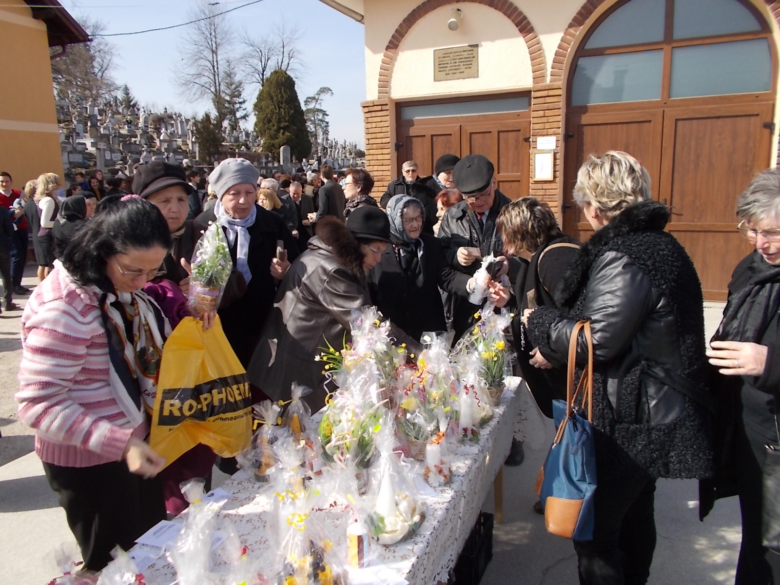 Zi de duminică deosebită la Biserica din Cimitirul Ortodox Mediaș. Îmbrăcați în costume populare, sute de credincioși au participat la o mică procesiune la încheierea Liturghiei, după care cei interesați au putut achiziționa diferite obiecte de la un bazar organizat în apropierea bisericii. Alături de credincioșii din Mediaș au fost prezenți și membrii Organizației Tinerilor din Sibiu, iar la finalul activității toți cei prezenți au avut posibilitatea să achiziționeze diferite obiecte realizte de beneficiarii ARPEHAM Mediaș. „La sfârșitul Sfintei Liturgii am avut parte de o procesiune, credincioșii venind de acasă la îndemnul nostru cu icoane. A fost o procesiune care s-a încheiat pe esplanada din vecinătatea Centrului Bisericesc închinat Sfântului Ierarh Nectarie, unde am adresat o rugăciune de mulțumire înaintea lui Dumnezeu pentru toate darurile pe care le revarsă asupra noastră. Am avut alături de noi o parte dintre membrii Organizației Tinerilor din Sibiu, care au cântat și ne-au încântat sufletele. Am avut și un moment social pentru că am organizat un bazar cu obiecte confecționate de către beneficiarii ARPEHAM Mediaș. Ei și-au expus obiectele, iar credincioșii noștri le-am procurat și astfel din banii obținuți ei pot să desfășoare în continuare activități, aducând mângâiere celor aflați în nevoi”, a spus preotul Flaviu Fleșer.