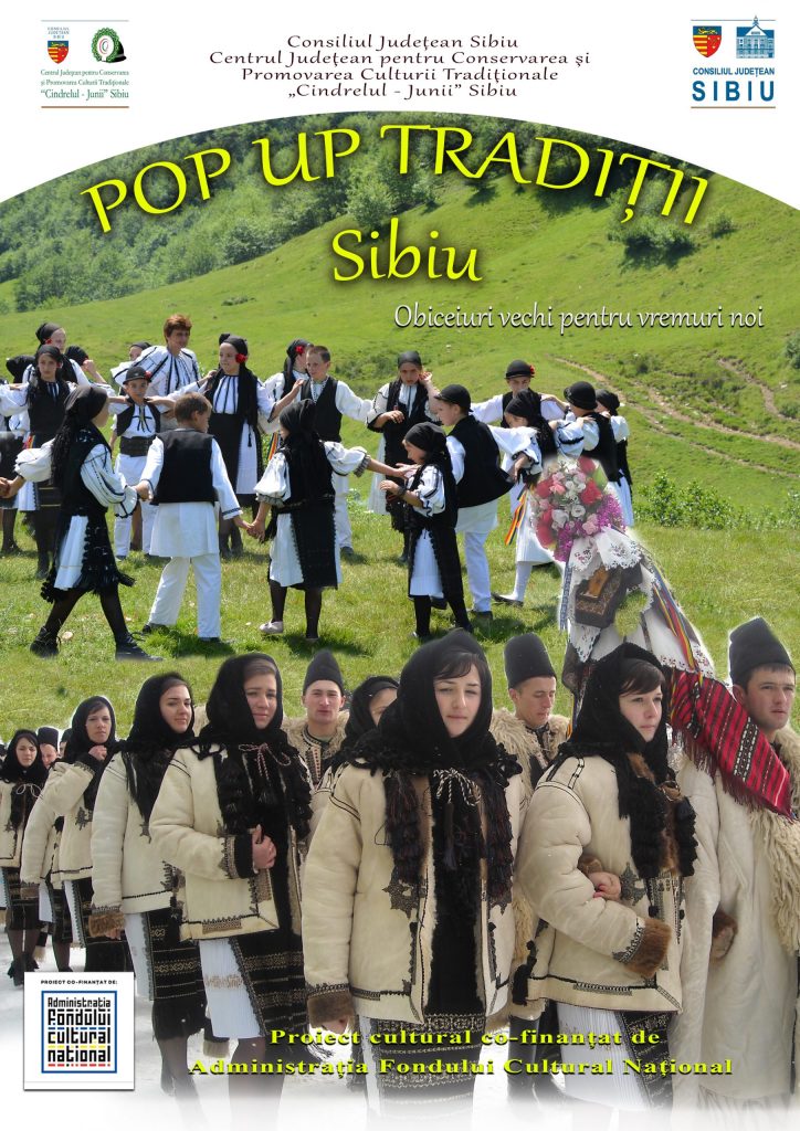 Pornind de la acest cadru socio-cultural, specialiști ai CJCPCT „Cindrelul-Junii” Sibiu au dezvoltat expoziția online „Pop Up Tradiții. Sibiu – Obiceiuri vechi pentru vremuri noi”, care valorifică obiceiuri legate de viața omului, tradiții de peste an și practici cu specific agrar, meșteșuguri de odinioară, bucate și leacuri vechi, cântece și dansuri populare. Unele au fost cercetate în teren în contextul sanitar dificil al anului 2021, altele au fost documentate în arhive, în literatura de specialitate sau în mediul online, constituindu-se într-o oglindă a patrimoniului imaterial sibian, de factură tradițională, în secolul al XXI-lea.