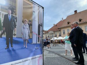 Președintele României, Klaus Iohannis, a vizitat, ieri, centrul Sibiului, admirând, totodată, expoziția „Focus Sibiu 2020- Retrospectiva anului 2019 în imagini”.