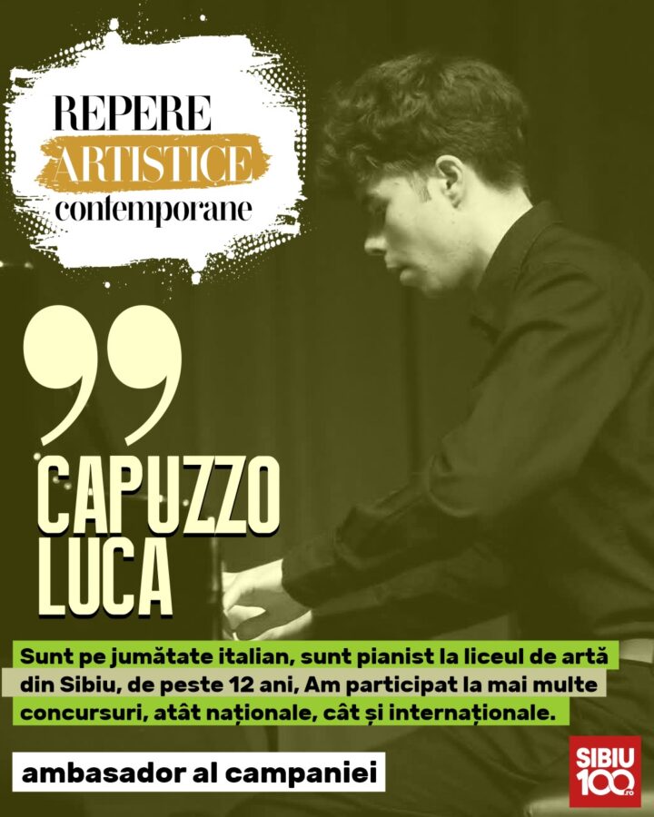 Capuzzo Luca este ambasadorul din această săptămână al campaniei Repere Artistice Contemporane. Este pianist și elev la Liceul de Artă din Sibiu și a participat la numeroase concursuri, atât naționale, cât și internaționale.