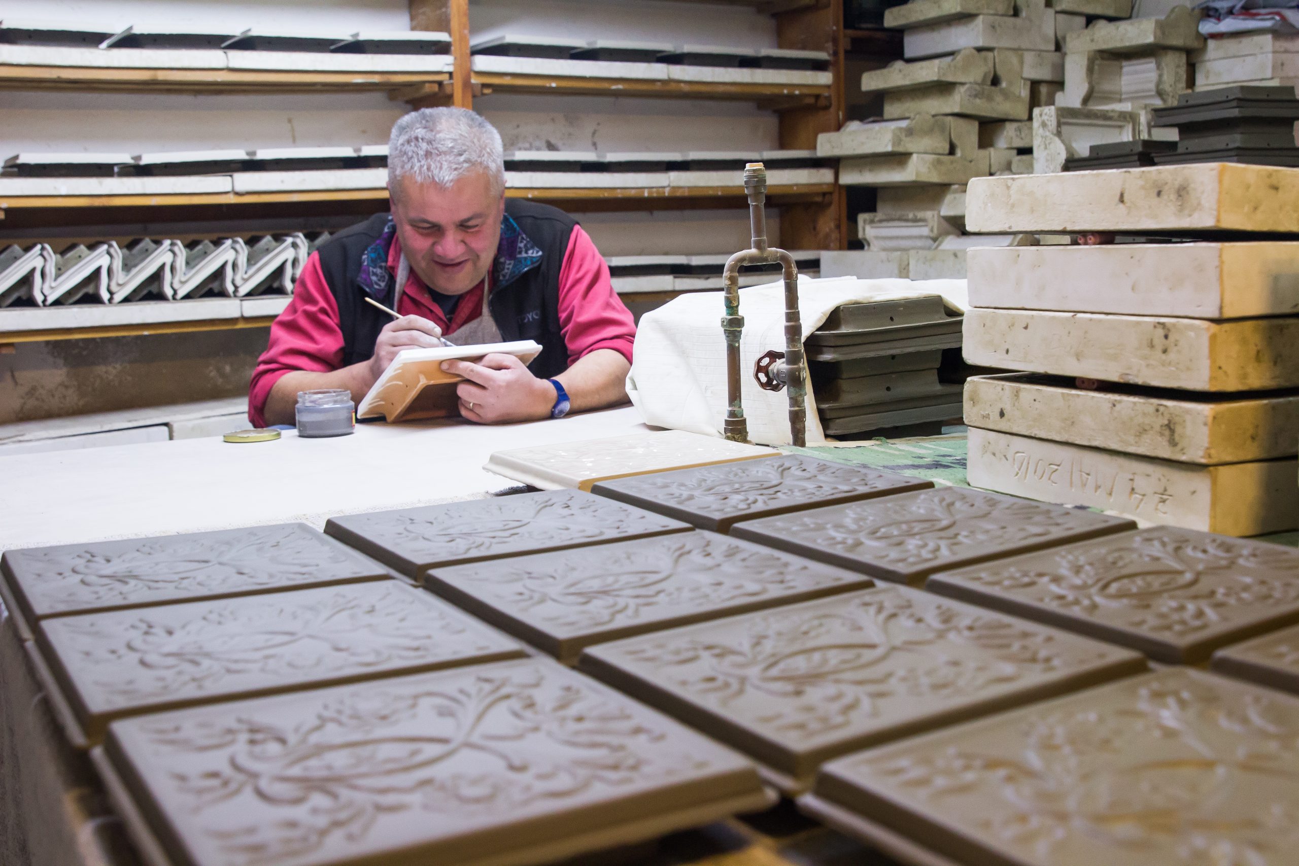De ce a ales cahlele? Pentru că era și este o nișă, un domeniu nu foarte acoperit. A lucrat și pe Roata Olarului, însă nu l-a pasionat. „Meșteșugul cahlelor făcute și pictate manual este unul complicat și nu sunt mulți cei care-l practică. Motivele pe care le folosesc sunt săsești, din zona Sibiului și a Brașovului. Am mai găsit inspirație și în cahlele vechi descoperite în podurile oamenilor sau chiar la Muzeul de cahle din Sibiu. Nu le reproduc fidel, folosesc doar ideea modelului”.