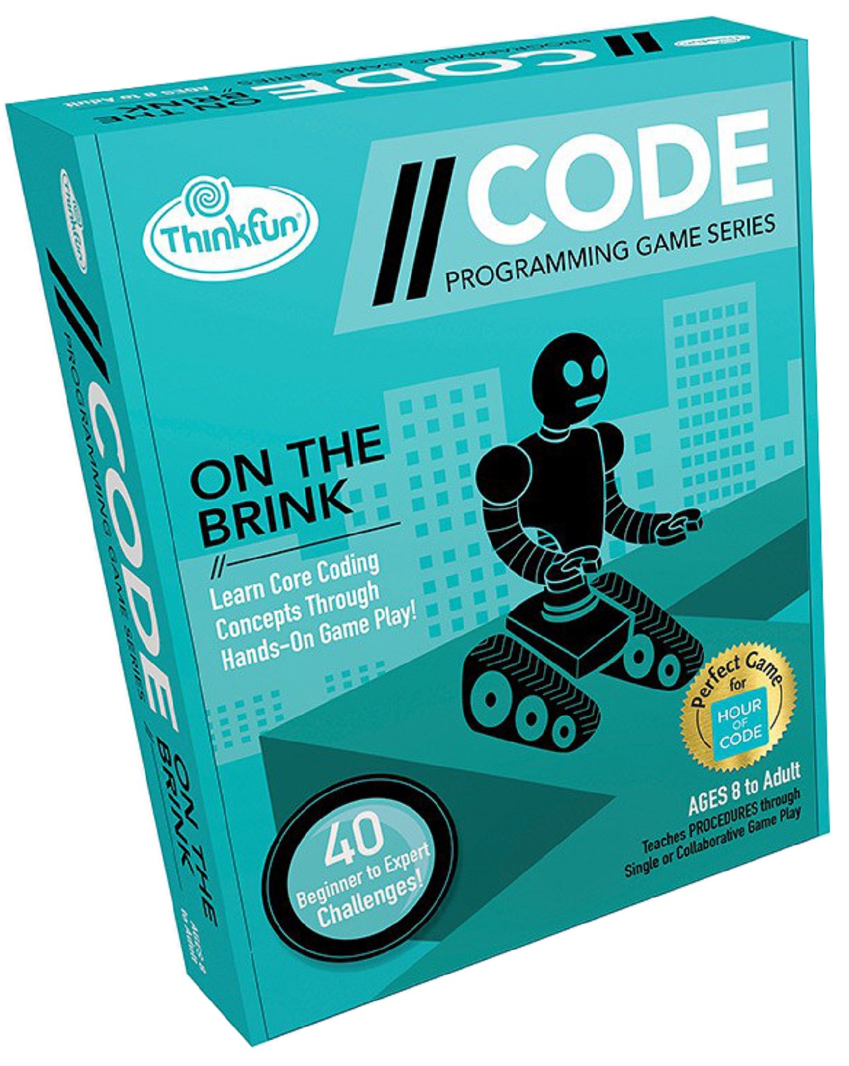 CODE On the Brink face parte din seria CODE și este proiectat să ofere o experiență de tip coding în afara ecranelor calculatoarelor. Folosind mișcările preprogramate ale robotului și abilitățile de rezolvare a problemelor, trebuie să dezvolți proceduri care se execută pe măsură ce robotul navighează și rulează programul dictat de panoul de control.