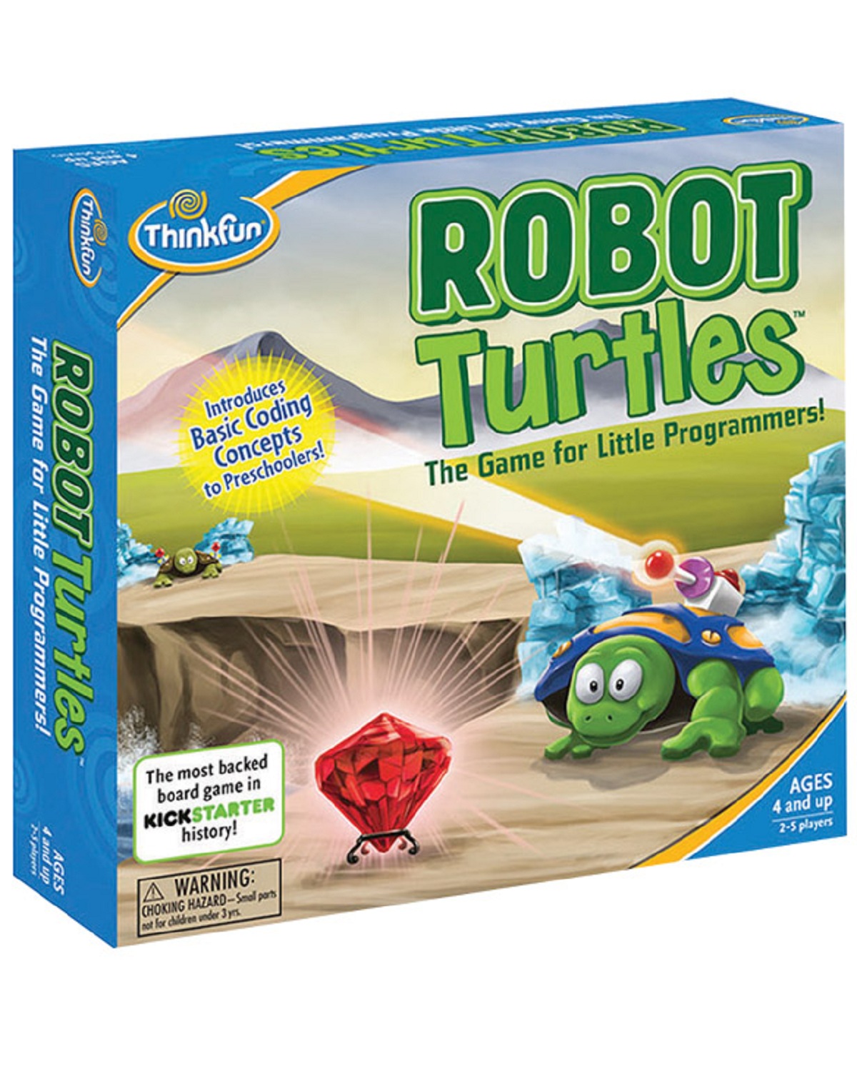 Robot Turtles este un joc de programare pentru preșcolari. Durează câteva secunde să-l învețe și oferă oportunități de învățare nesfârșite. Jucătorii își mută țestoasele robot cu ajutorul cardurilor de cod pentru a ajunge la o bijuterie prețioasă. Este un joc recomandat, atât micilor programatori, cât și pentru întreaga familie.