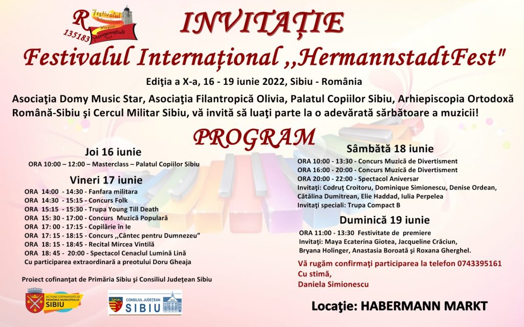 Compact B, Mircea Vintilă și trupa Young Till Death vor concerta, în acest sfârșit de săptămână, în Piața Habermann, în cadrul Festivalului Internațional „HermannstadtFest”, un eveniment aflat la cea de-a zecea ediție. Manifestarea, programată între 16 – 19 iunie, va aduna la Sibiu peste 100 de tineri din țară și străinătate.